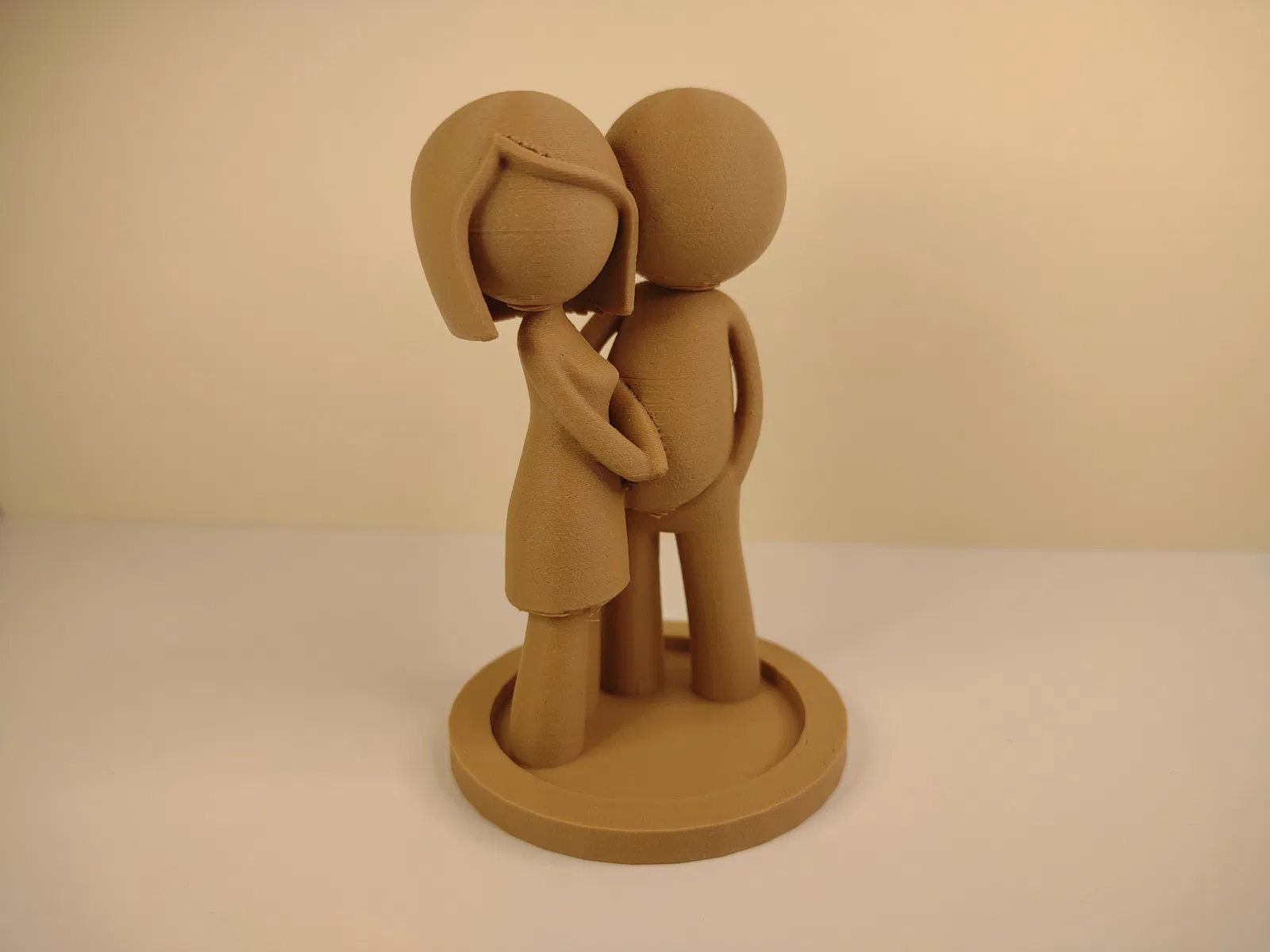 Một mẫu thiết kế hiện đại và tinh tế khắc họa hình ảnh cặp đôi đang đứng tạo dáng chụp ảnh cùng nhau. Mẫu in cần sử dụng support để đạt chất lượng tốt nhất.