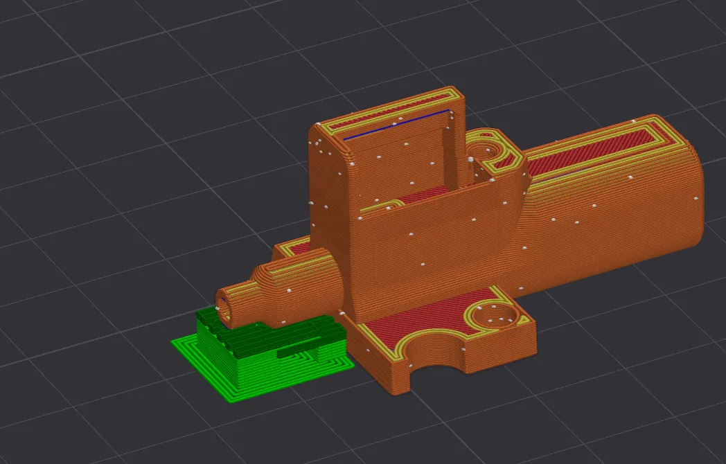 In bằng nhựa PLA/PETG, chiều cao lớp 0.12 mm, 3 lớp vỏ (wall loops), độ đặc (infill) 95%, hỗ trợ thủ công (manual support) cho khu vực đã được hiển thị trên ảnh chụp màn hình.
