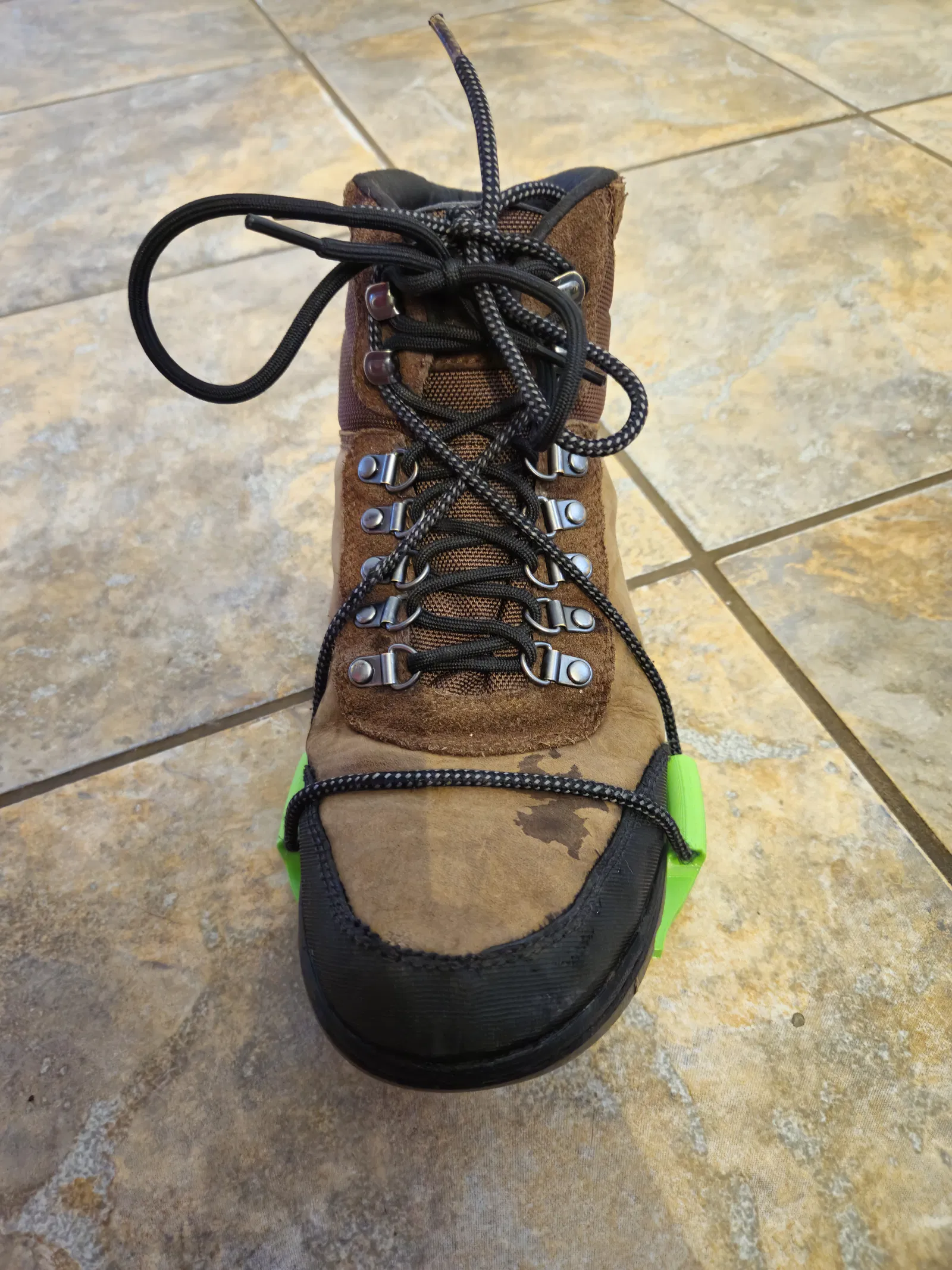 Bộ đinh đế giày (crampons) in 3D này giúp bạn tăng độ bám trên băng tuyết một cách hiệu quả. Với thiết kế sử dụng ốc vít M4 làm đinh và cố định bằng dây giày, sản phẩm này là giải pháp giá rẻ, bền bỉ và dễ làm cho các chuyến thám hiểm mùa đông của bạn.