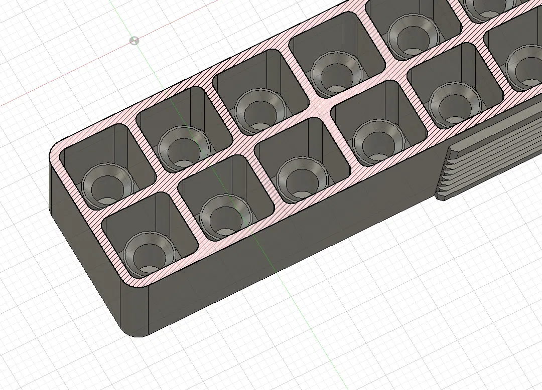 WallThickness là độ dày thành và đáy hộp. Thông số này nên là bội số của kích thước nozzle, mình dùng đơn vị mm ở đây. Nếu đạn của bạn có vành (belted rounds), có thể bạn cần tăng độ dày để tạo khoảng hở.