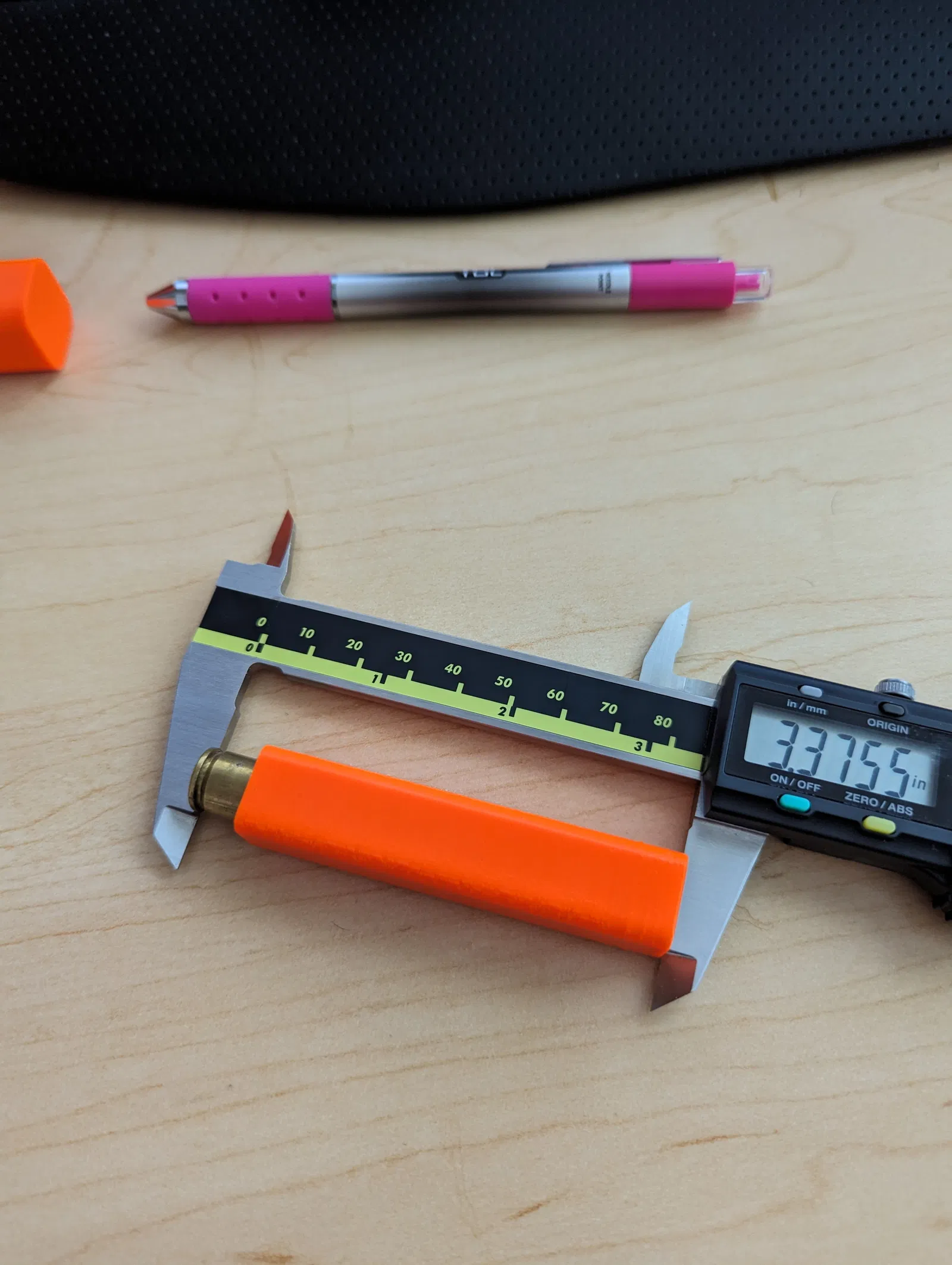 BrassLength là chiều dài phần vỏ đồng. Mình dùng thông số này để xác định chiều cao thành hộp. Nếu muốn thành hộp cao hơn (để lộ ít vỏ đạn hơn khi mở hộp), bạn cứ tăng số này lên. Mục tiêu của mình là để lộ khoảng 0.5" vỏ đồng phía trên thành hộp, nhưng bạn có thể tùy chỉnh theo ý thích.