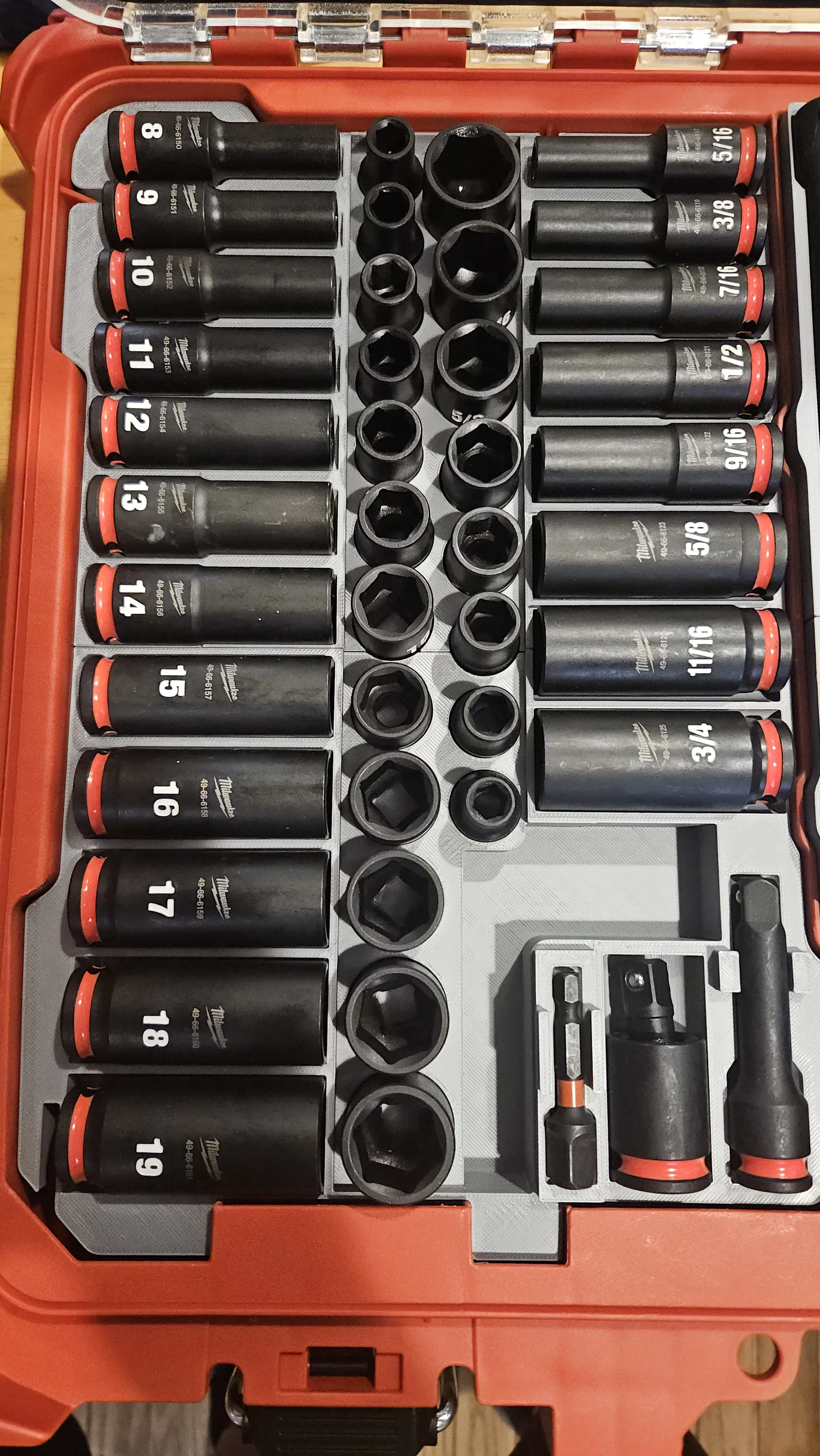 Mình thiết kế khay này để đựng bộ đầu khẩu Milwaukee SHOCKWAVE 3/8 inch hệ SAE và Metric 6 cạnh (43 chi tiết). Mã sản phẩm # 49-66-7009. Khay này có thiết kế tương tự các loại khay dùng cho hộp 5 ngăn slim. Nếu bạn thấy hữu ích và muốn ủng hộ, mình rất trân trọng qua Cash App tại $NathanGraves1002.