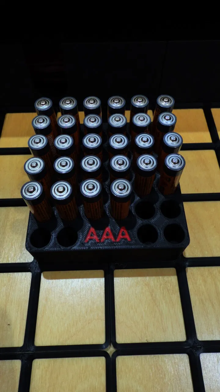 Khay đựng pin AAA chuẩn Gridfinity kích thước 2x2. Thiết kế bao gồm phần nhãn tách rời giúp việc in đa màu sắc trở nên đơn giản. Chiều cao khay là 30mm, rất gọn gàng để sắp xếp pin trong ngăn kéo của bạn.
