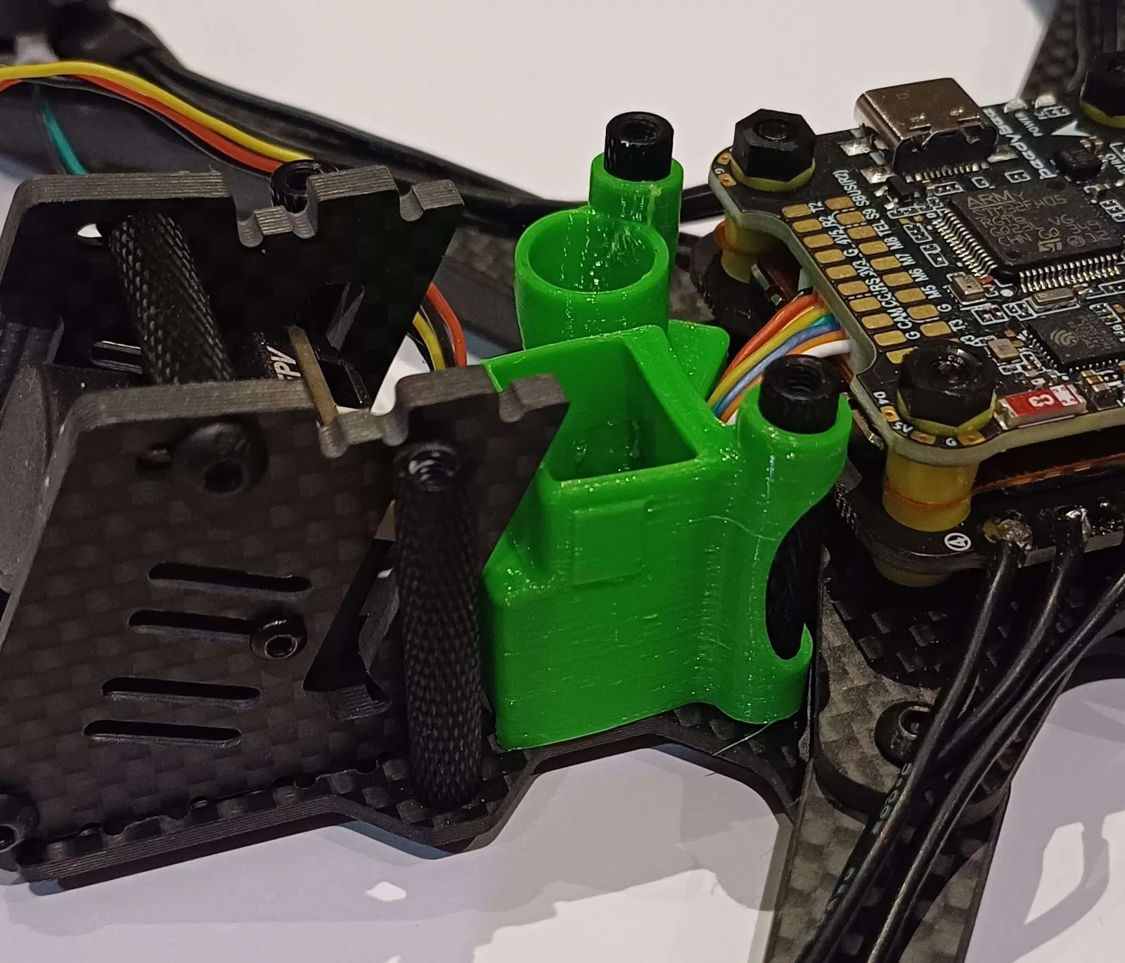 Phụ kiện in 3D tùy biến cho khung drone JeNo 5.1, giúp anh em cố định Capacitor, Spike Absorber và Vifly Finder 2 một cách gọn gàng. Thiết kế này được cải tiến từ mẫu Vifly Finder Mini để tương thích hoàn hảo với Vifly Finder 2 phổ biến.