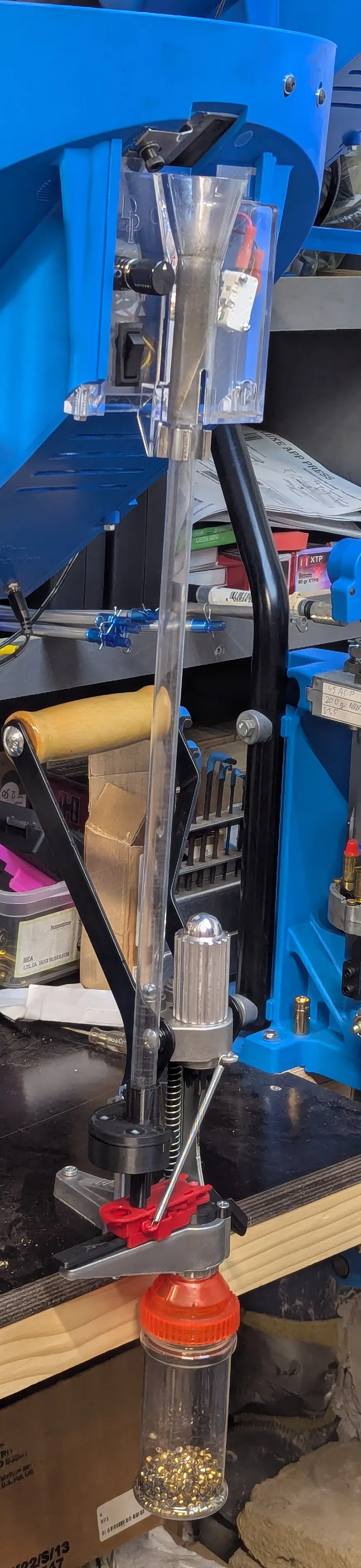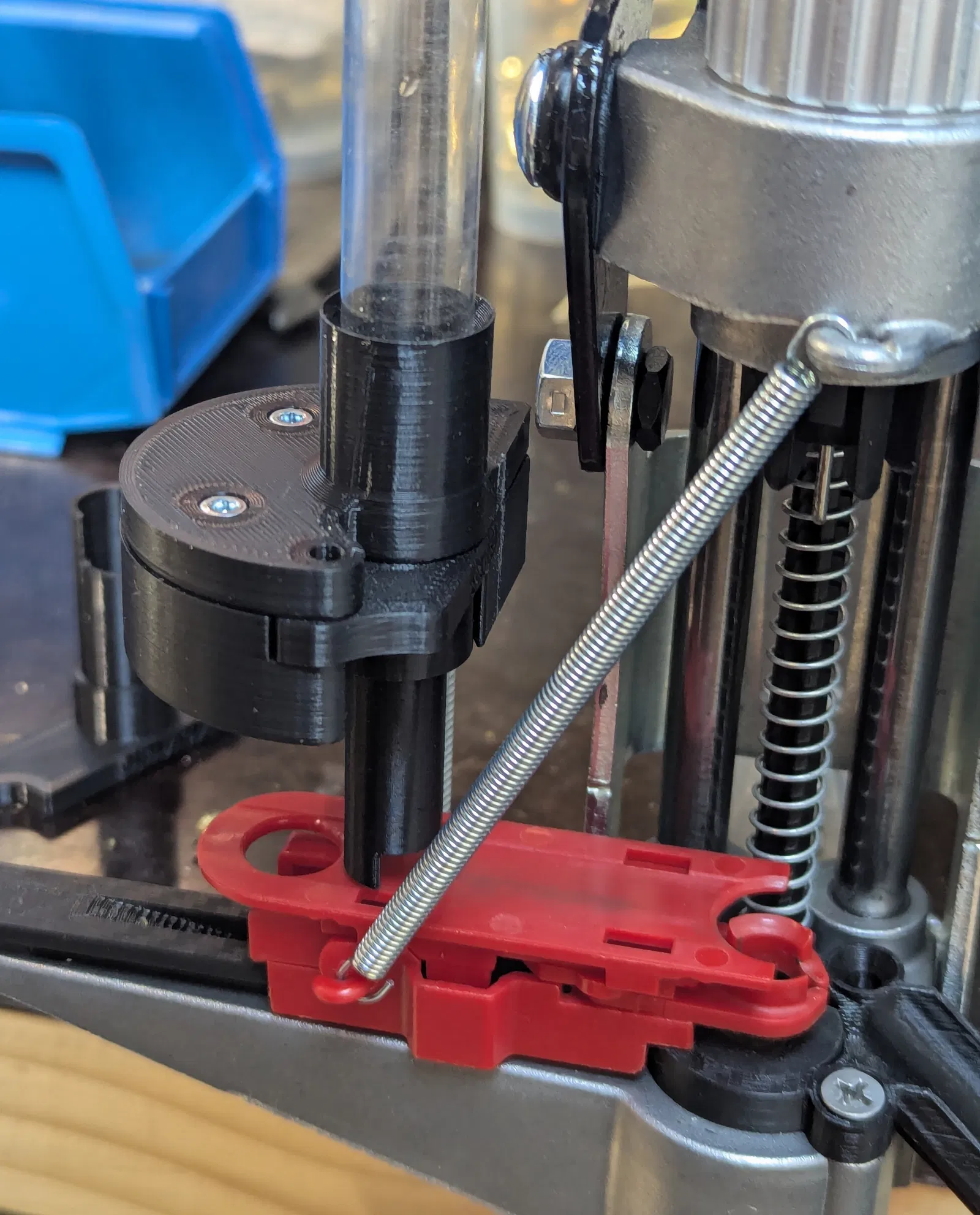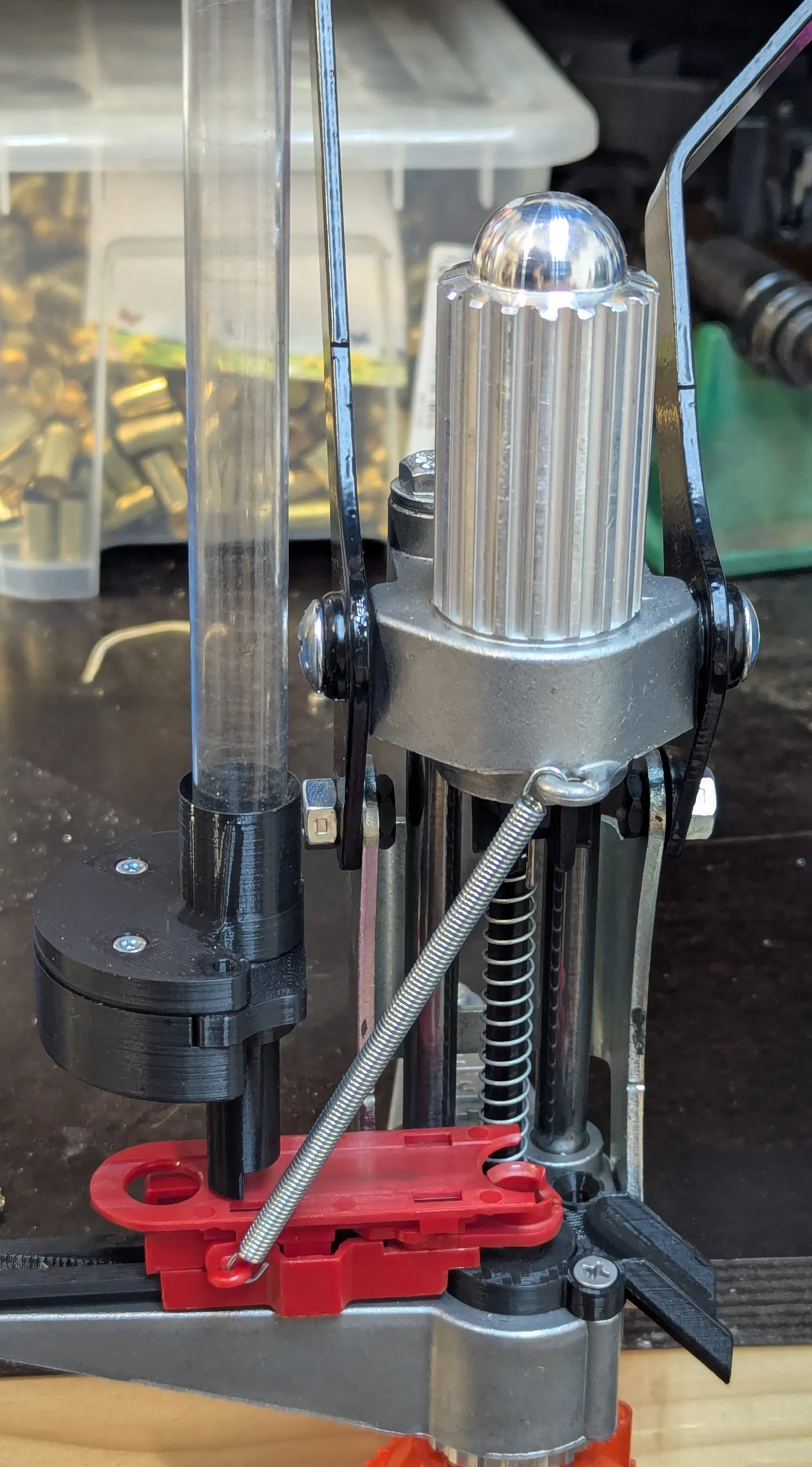 Tuy nhiên, mình đã điều chỉnh nó để dùng được với bộ cấp vỏ đạn Dillon (Dillon case feeder) và tích hợp hệ thống thay đổi insert không cần dụng cụ để phù hợp với nhiều loại vỏ đạn khác nhau.