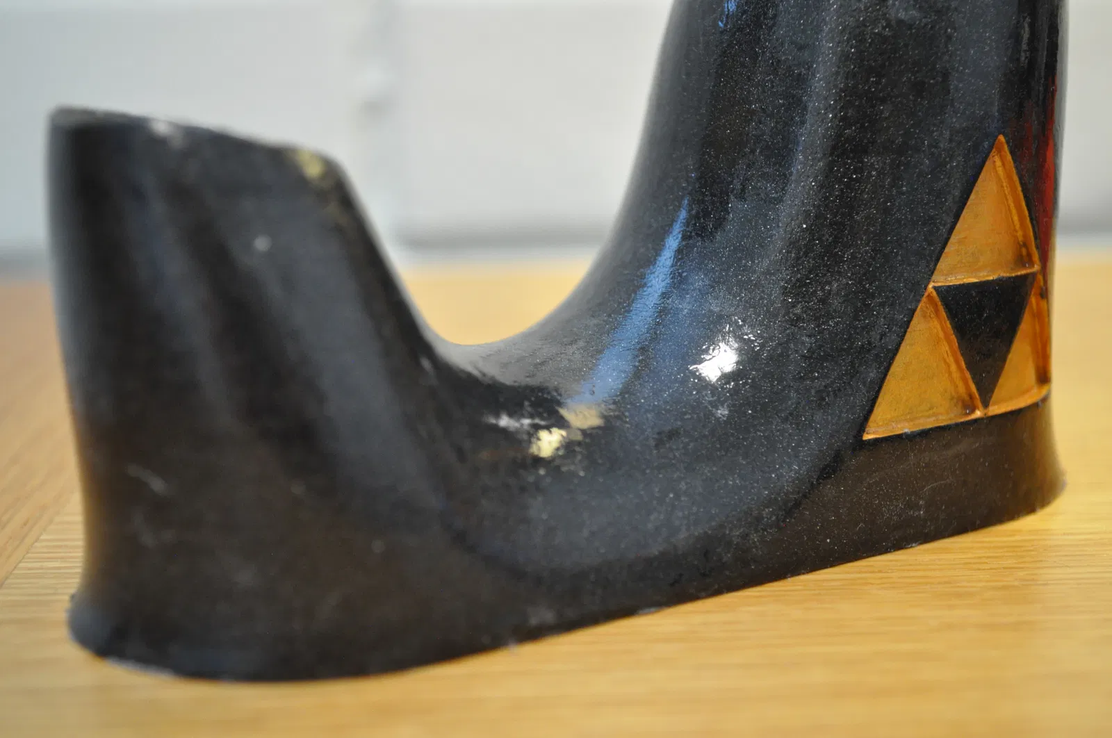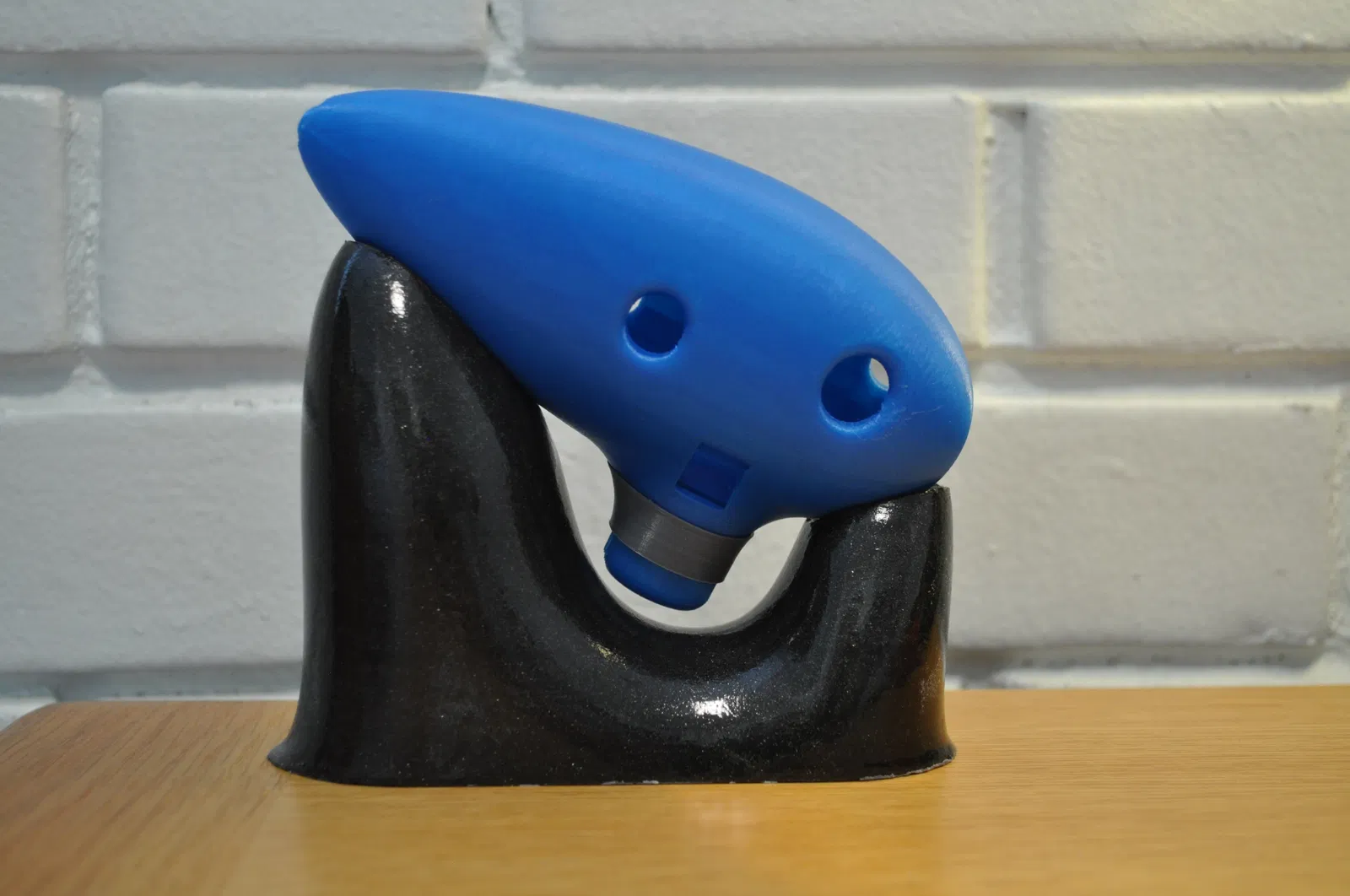 Mình đã làm cây Ocarina Of Time của tác giả Zuza từ hồi trước, trong bộ đó có sẵn cái đế nhưng lúc đó mình chưa in vì không biết mình có đủ kiên nhẫn để tập chơi hay không. Sau một thời gian tập luyện thì thấy nghiện, nên mình quyết định in luôn cái đế. Mình thấy cái đế gốc hơi đơn điệu quá, nên đã thêm biểu tượng Triforce vào cho đúng chất Zelda.