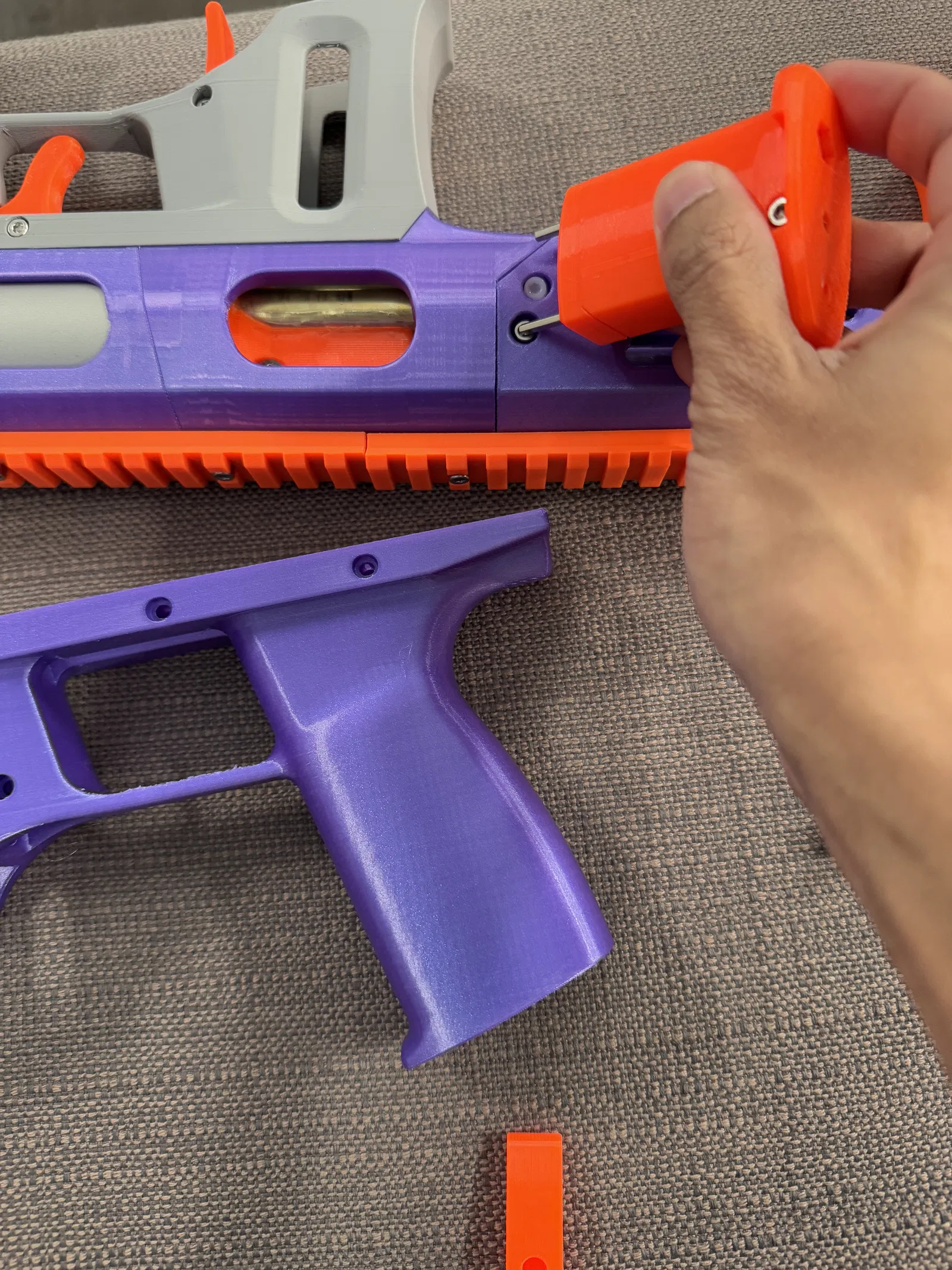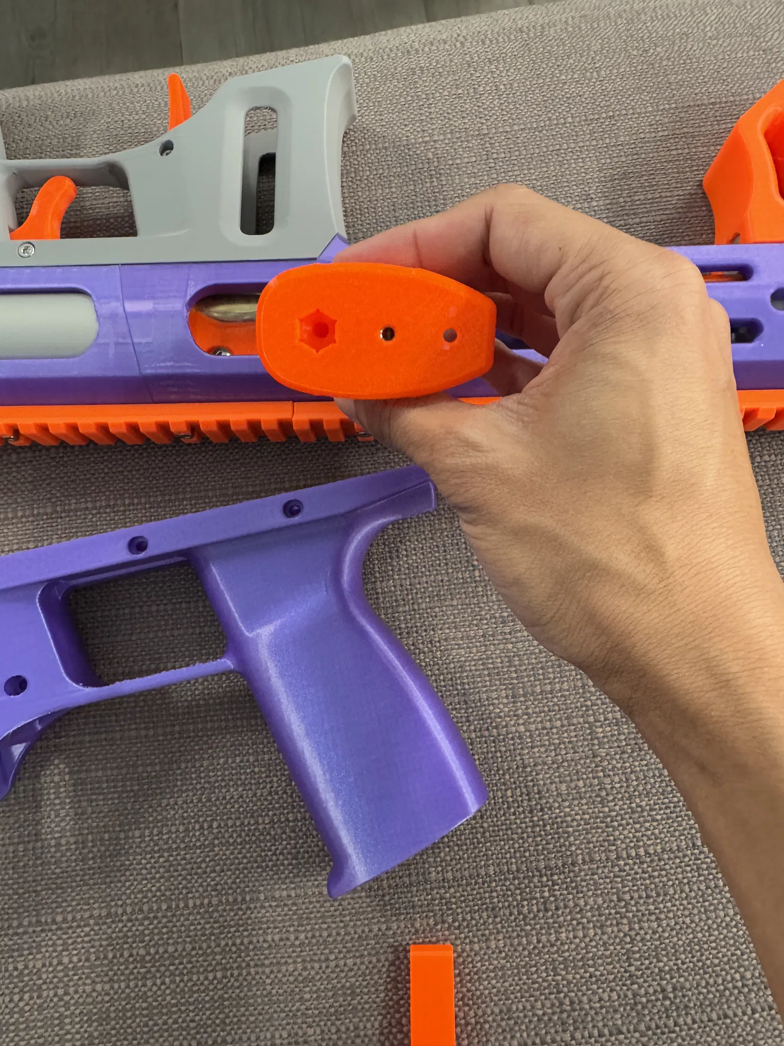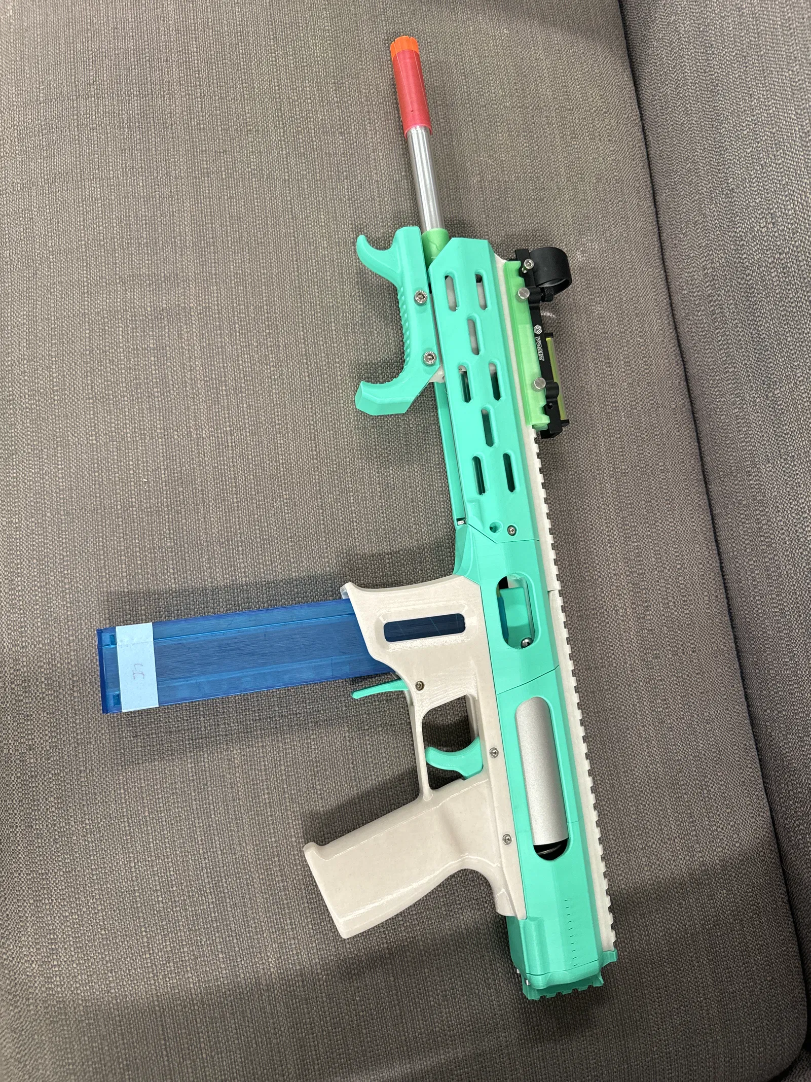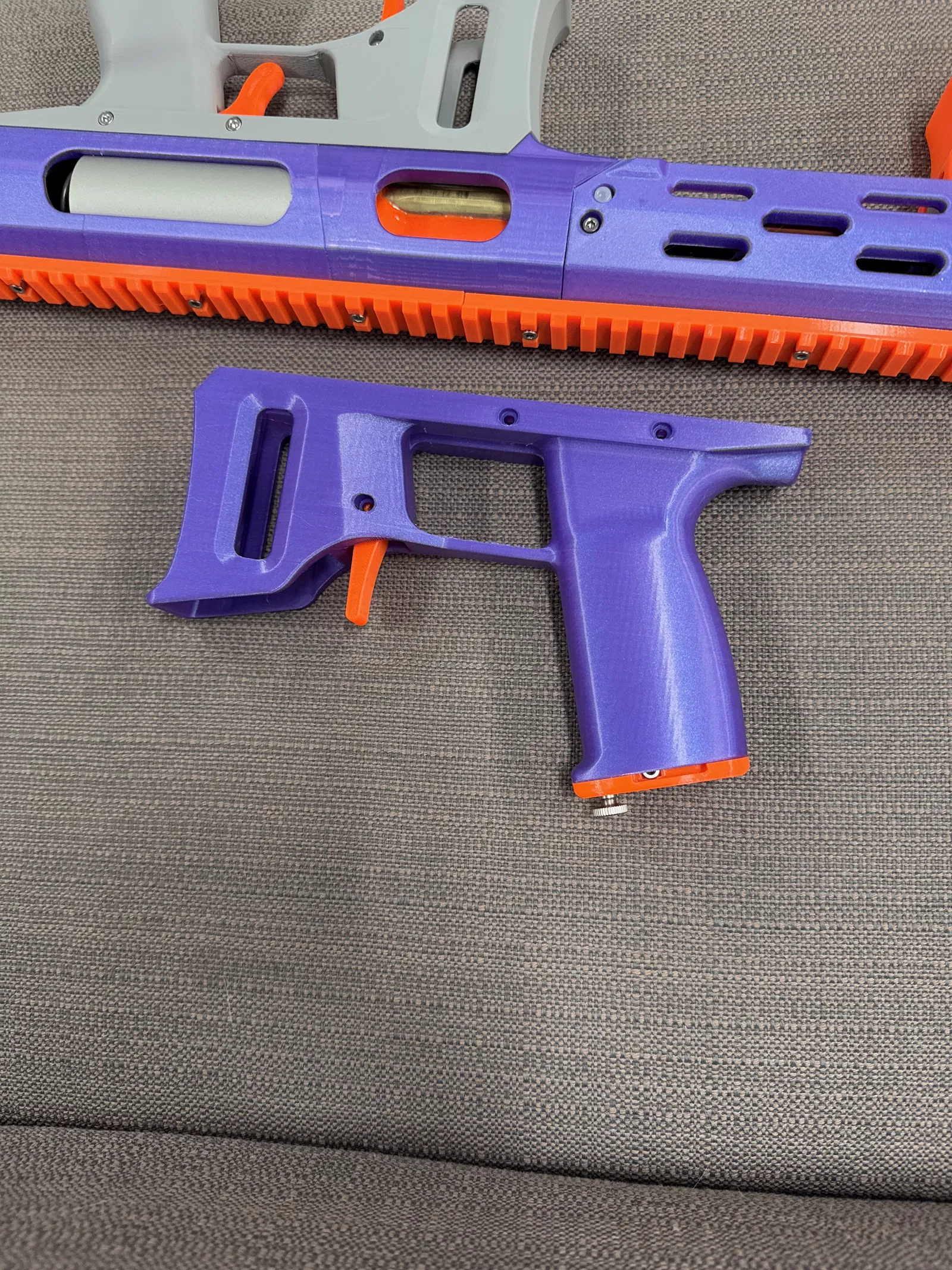 Nhật ký thay đổi: 24/02/25: Thay thế Blush Plunger bằng Rush Unified Plunger, đây là linh kiện chuẩn. Phần này đã được kiểm tra và hoạt động tốt với Blush, Reaver, đồng thời sẽ hỗ trợ các thiết kế plunger gia công trong tương lai. 30/01/25: Thay thế Rush PT Front bằng Blush PT Front do các thanh ren không khớp nhau. Đã thêm Blush Mag Release Short Catch (cảm ơn Dingus) để giảm hành trình - sử dụng nếu băng đạn bị kẹt khi nhả. ===== Tài liệu đầy đủ đang được cập nhật. Đây là bản hoàn chỉnh của mẫu Blush remix với các tính năng: Tương thích lò xo X. Spring rest có thể điều chỉnh - in part “Adjustment Wrench” và lắp 2 vít M3x12, HOẶC in các part ToolCap để tích hợp công cụ vào tay cầm. Không sử dụng thanh ray tuyến tính (linear rail). Hãy in mọi thứ không nằm trong thư mục Archive. Bất kỳ part nào không có nhãn “Blush” đều được giữ nguyên từ blaster gốc. ===== ToolCap cần một số chỉnh sửa bổ sung từ ngày 14/01/25 để hỗ trợ việc lắp thanh ren, nhưng bạn chỉ cần in lại các part - không mất mát phần cứng. Nó giữ 2 khóa lục giác M2.5 để điều chỉnh spring rest và tháo vít M3, cùng với một cờ-lê để rút thanh ren và đai ốc. Ngoài ra, yêu cầu mỗi loại 1 cái: M3 brass heatset, vít đầu trụ M3x6, vít đầu trụ M3x12, vít vặn tay M3 dài 10-18mm, đai ốc 6-32.
