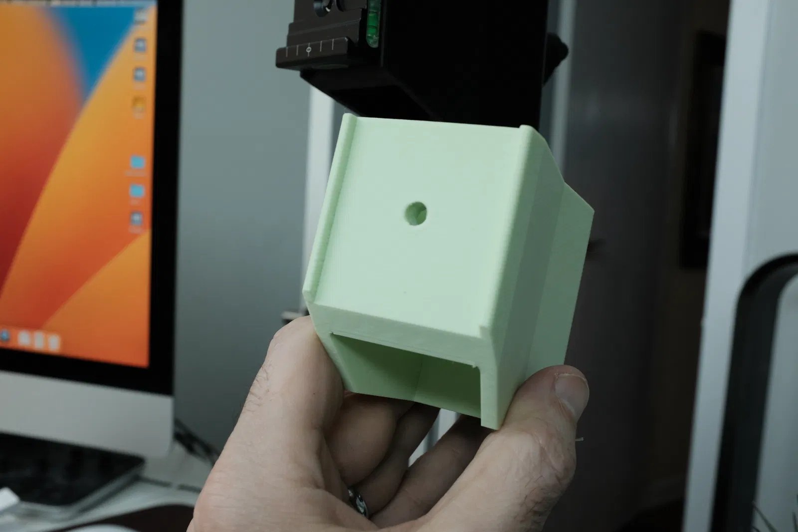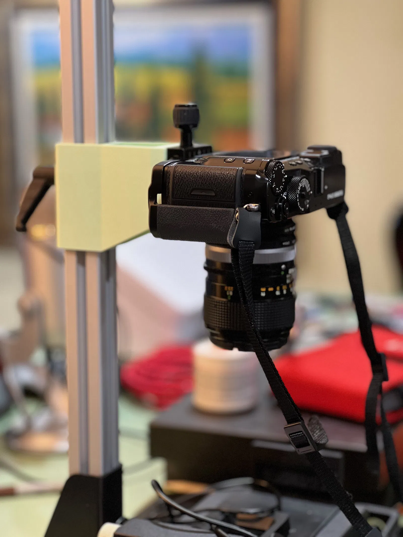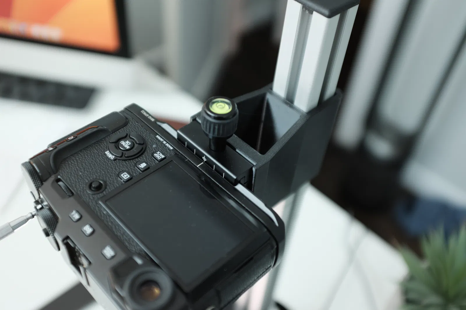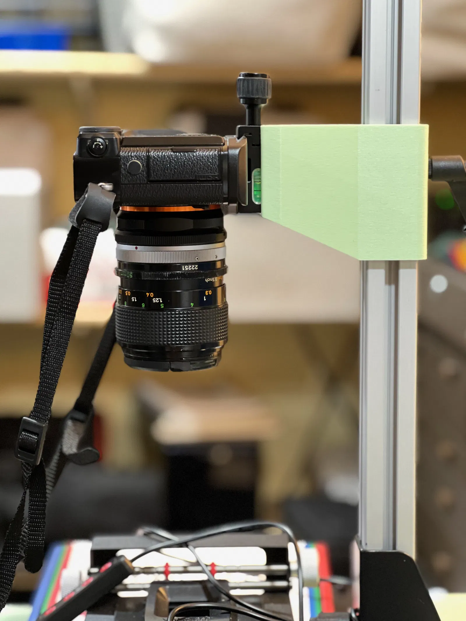 Tôi thiết kế phụ kiện này vì không hài lòng với độ ổn định của giá đỡ gốc đi kèm bộ Valoi copy stand; độ hở quá lớn và giá đỡ không đủ cao để chống rung lắc. Giá đỡ này ôm sát thanh ray 3030 và có phần ống dài hơn giúp giữ máy ảnh chắc chắn. Phiên bản của tôi cũng đưa máy ảnh lại gần cột trụ thêm khoảng 1 inch để tăng độ ổn định; bạn hoàn toàn có thể điều chỉnh thông số này trong tệp thiết kế.