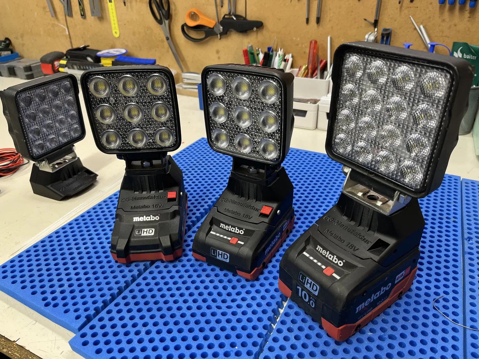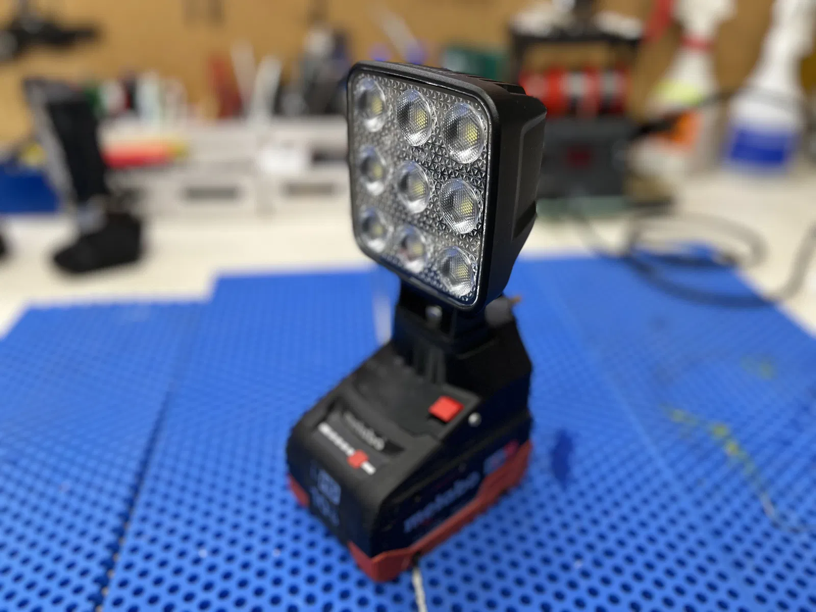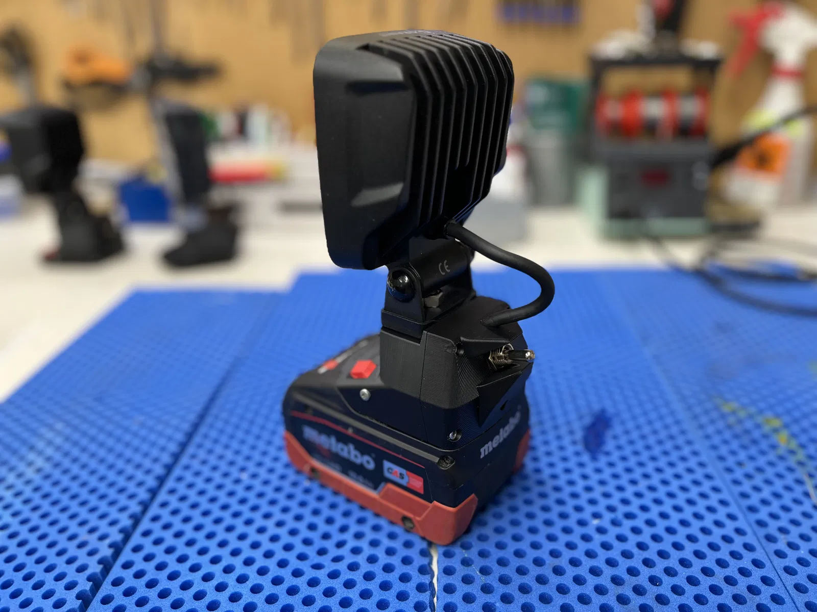 Cái đế pin này giúp anh em tận dụng pin 18V Metabo để làm đèn công trình siêu sáng.