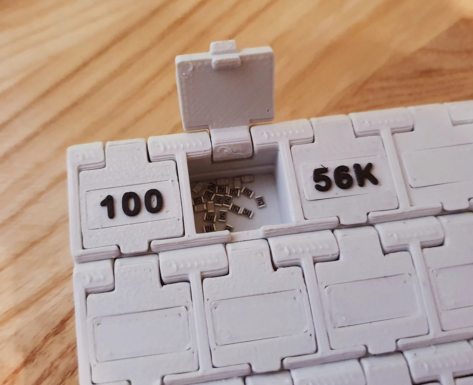 Mẫu hộp đựng linh kiện SMD cực kỳ tiện lợi và dễ in. Phiên bản này được cải tiến với phần nắp có thể gắn nhãn, giúp bạn phân loại linh kiện điện tử một cách ngăn nắp và khoa học hơn cho góc làm việc của mình.