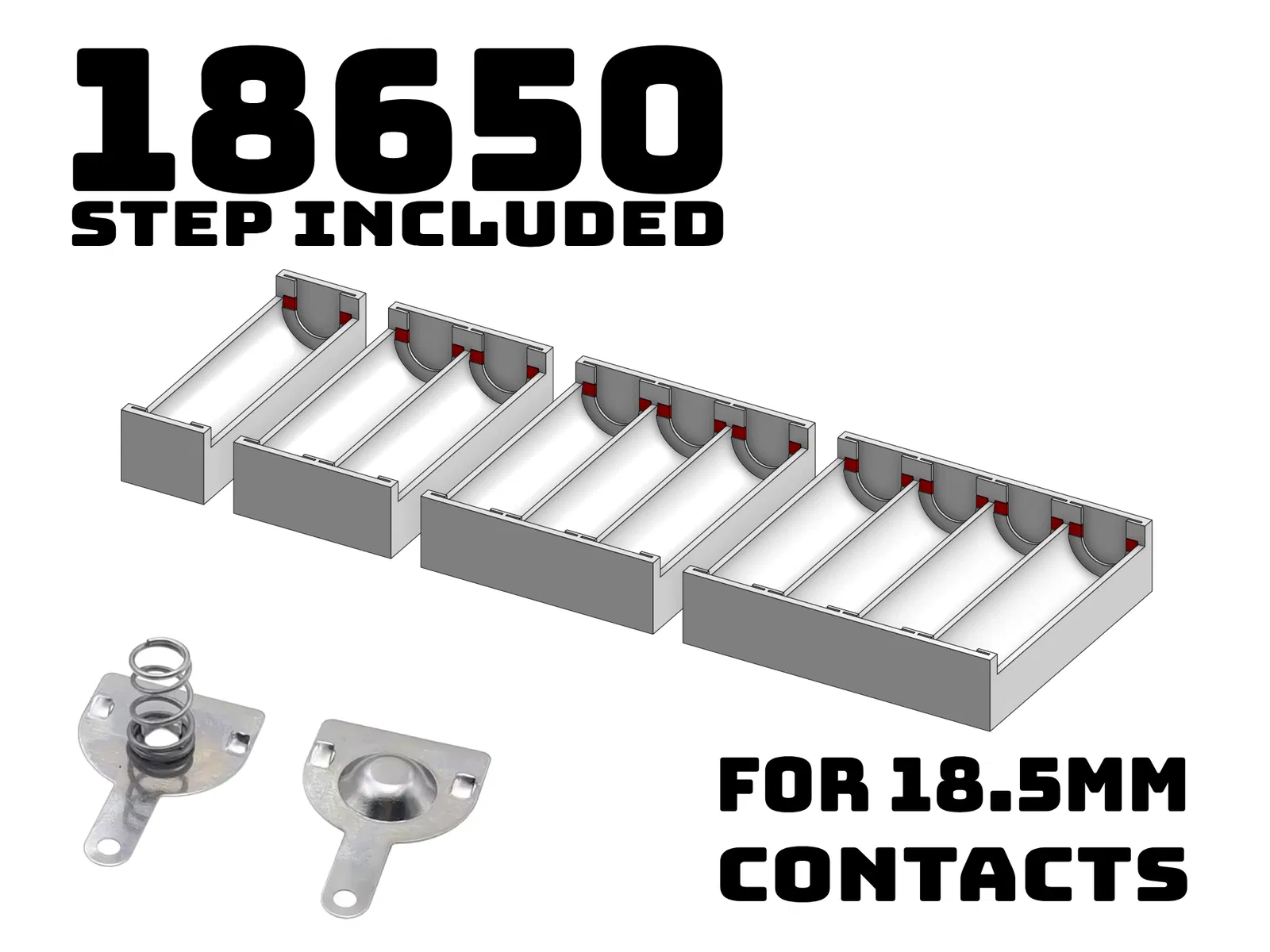 Đế giữ pin 18650 in 3D này được thiết kế chuyên dụng cho các loại tiếp điểm dạng trượt 18.5mm (có thể dễ dàng tìm mua trên AliExpress), cực kỳ lý tưởng để tích hợp pin 18650 vào các dự án của bạn. Dù bạn đang chế tạo bộ pin rời hay làm các thí nghiệm điện tử độc đáo, chiếc đế này đều đáp ứng tốt nhu cầu.