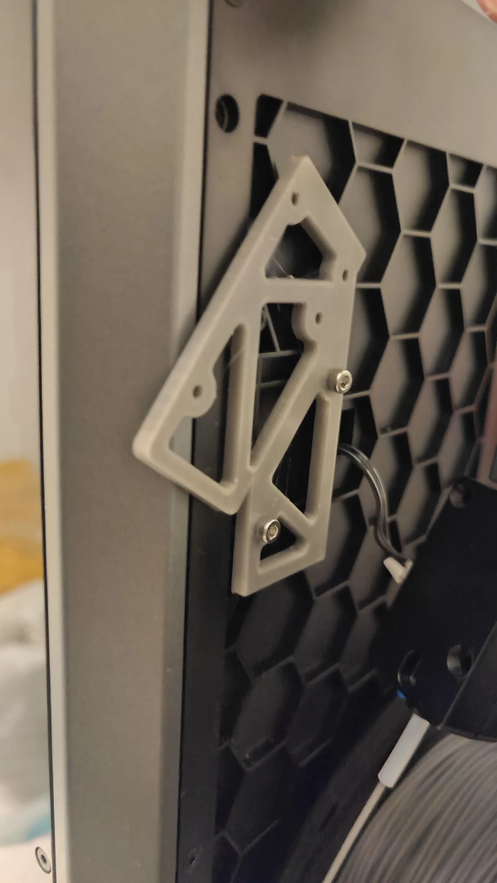 Đây là bản mod giúp bạn lắp giá đỡ cuộn nhựa ở bên hông máy in Creality K1. Thiết kế này giúp bạn sử dụng được máy sấy nhựa hoặc vị trí đặt cuộn nhựa linh hoạt hơn mà không cần thay đổi cấu trúc máy hay cáp cảm biến.