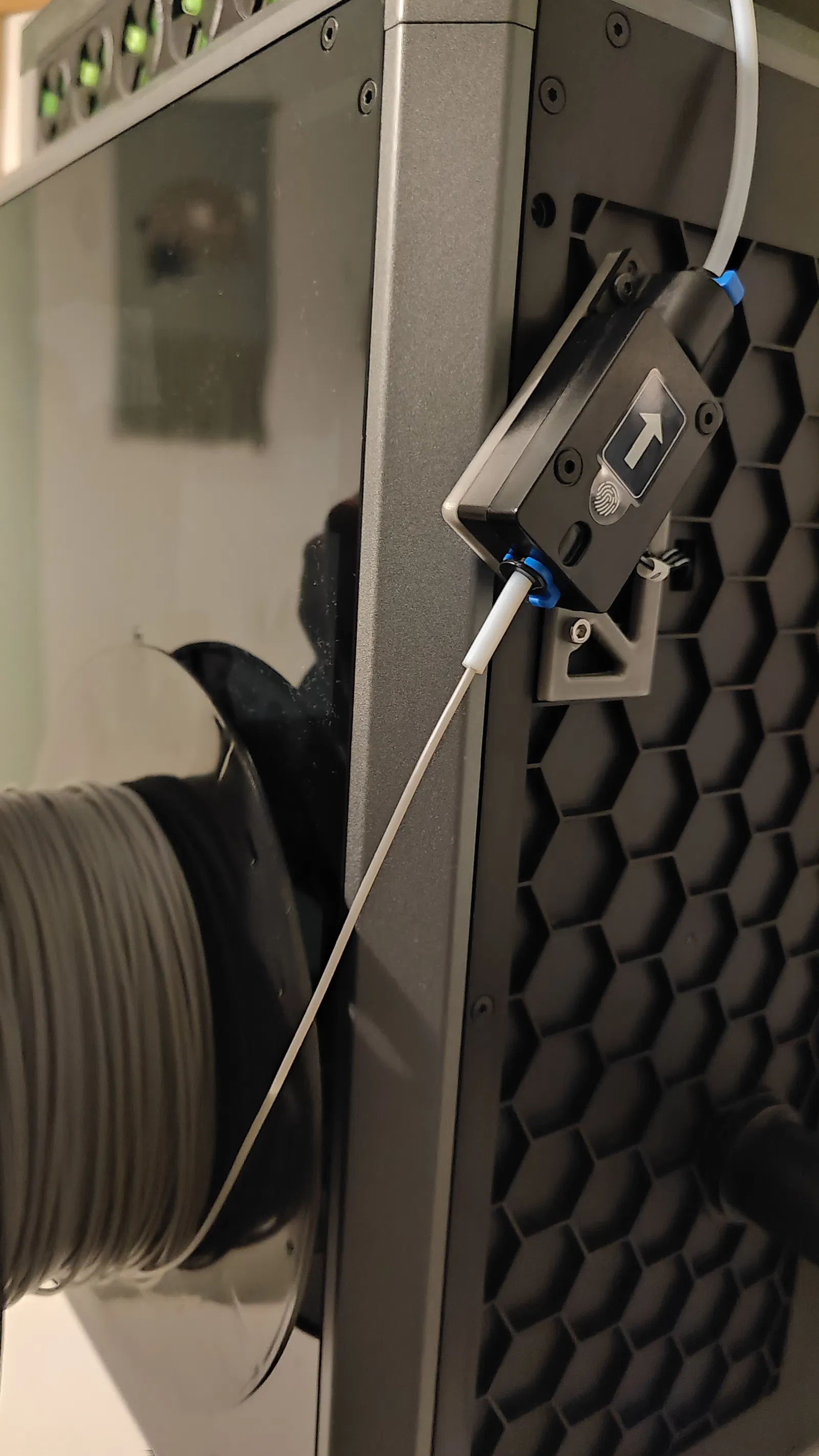 Bản mod này cho phép bạn gắn giá đỡ cuộn nhựa ở bên hông hoặc in trực tiếp từ máy sấy nhựa, kể cả từ phía sau hoặc bên hông máy in.