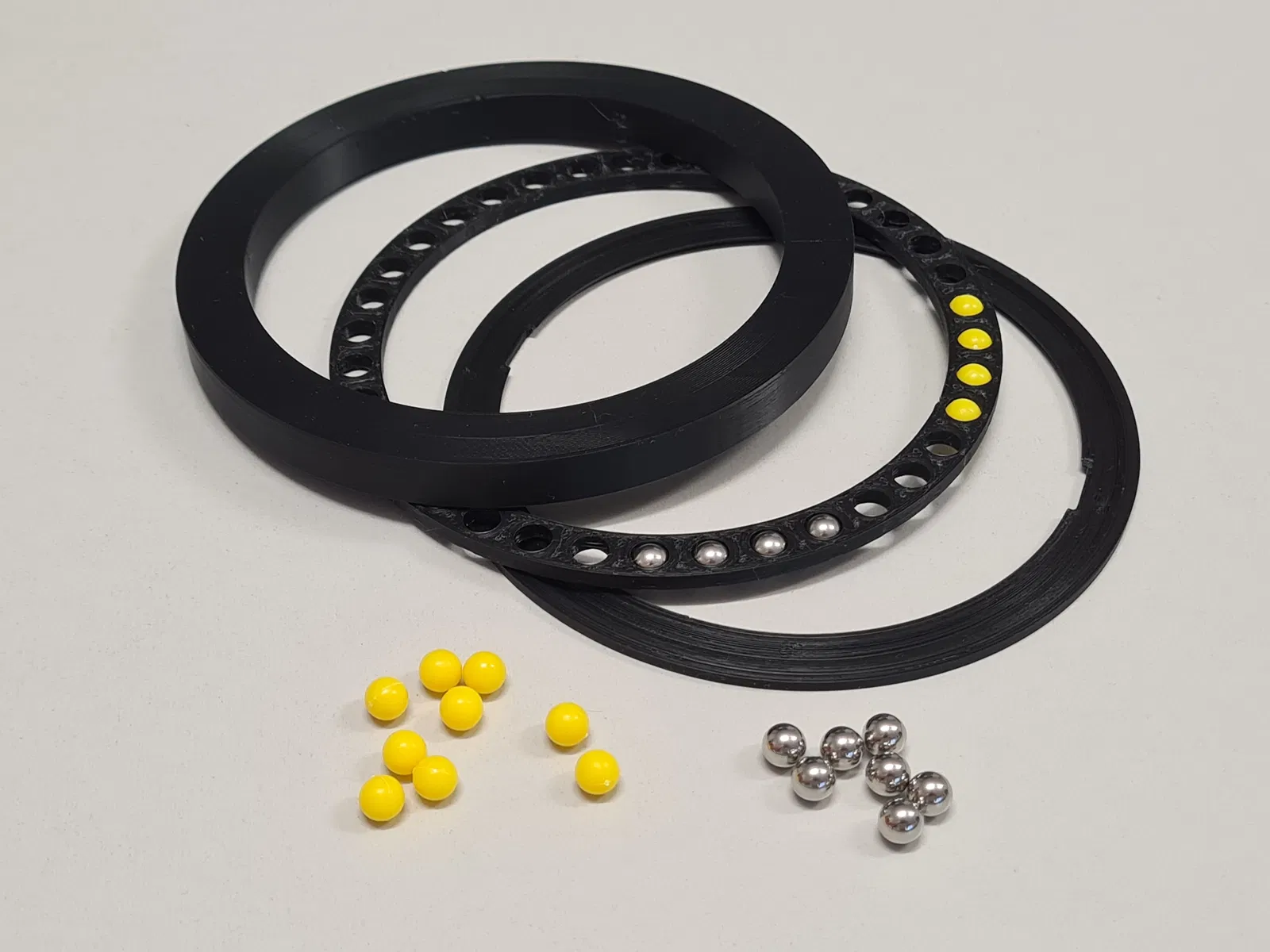 Bàn xoay trưng bày kèm bạc đạn chặn giúp xoay trơn tru, giảm ma sát tối đa nhờ sử dụng đạn airsoft BB hoặc bi thép tiêu chuẩn. Thiết kế bền bỉ, chịu tải tốt, lý tưởng để trưng bày các vật phẩm nặng mà vẫn đảm bảo độ mượt mà khi xoay.