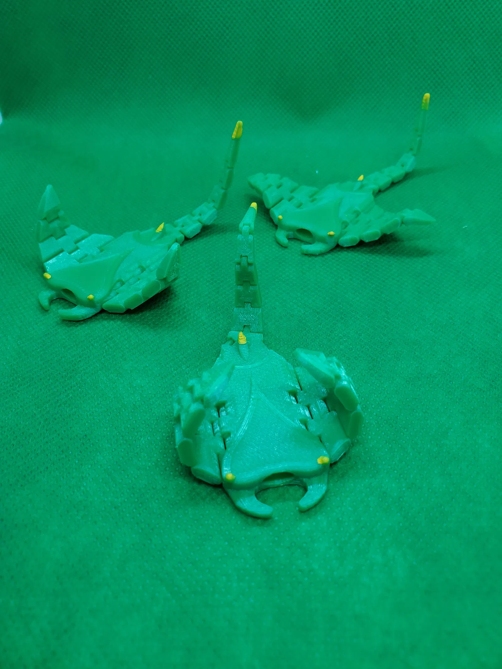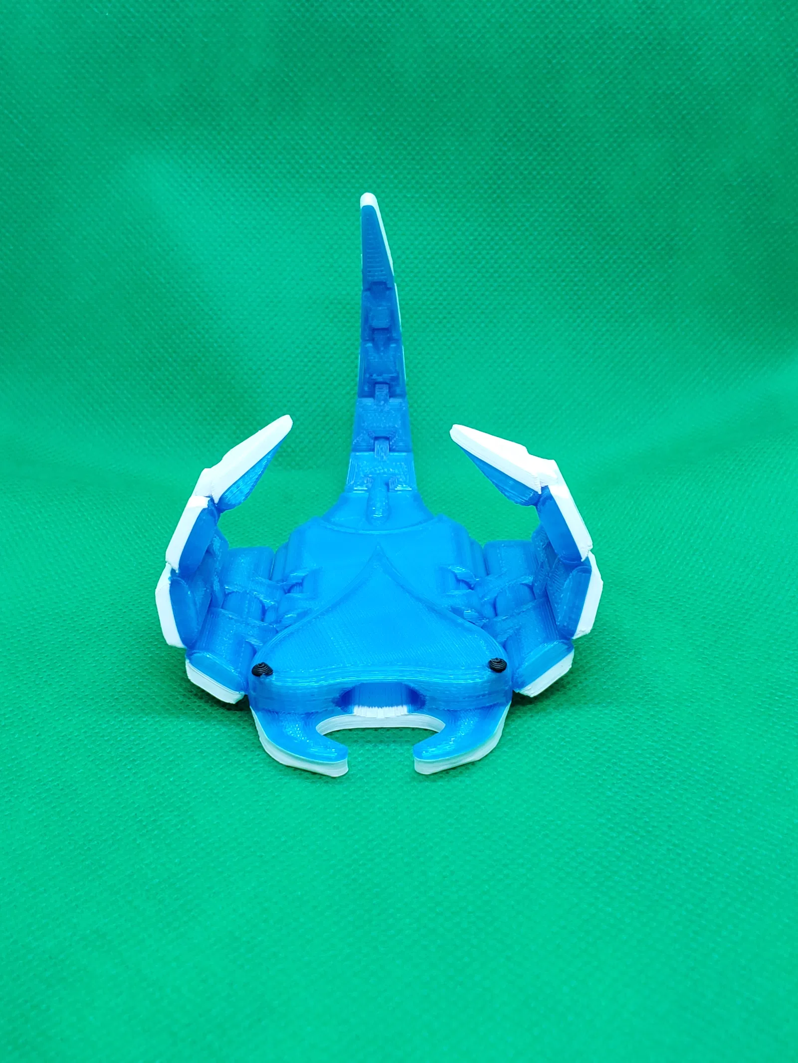 Mình dùng máy BIBO, chiều cao lớp in 0.2mm, vòi phun 0.4mm và in ở tỉ lệ 80% để vừa với bàn in. Phần mắt được tô màu đen. Sự chuyển màu từ trắng sang xanh là do mình thay nhựa ở độ cao 2.5mm. Dựa trên phản hồi, ở tỉ lệ 50% đuôi sẽ hơi giòn, mình khuyên các bạn nên in ở tỉ lệ 75%. Ở tỉ lệ 100%, nó sẽ cử động rất linh hoạt.