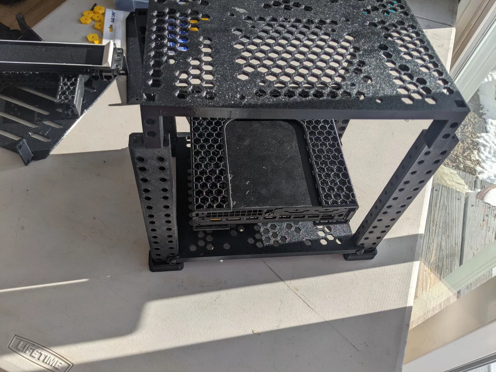 Đây là phiên bản được thiết kế riêng từ khung giá đỡ tham số (parametric rack) của mình để gắn vừa dòng Lenovo M920 Tiny. Kích thước được thiết kế cho hộp máy 179mm x 37mm x 183 mm (Rộng x Cao x Sâu), vừa khít với chiếc M920q của mình. Nhiều dòng Lenovo Thinkcentre khác cũng nên gắn vừa. Thiết kế này ít nhất sẽ dùng được cho các dòng máy tính để bàn nhỏ gọn Thinkcentre M700/M900, M710/M910 và M720/M920.