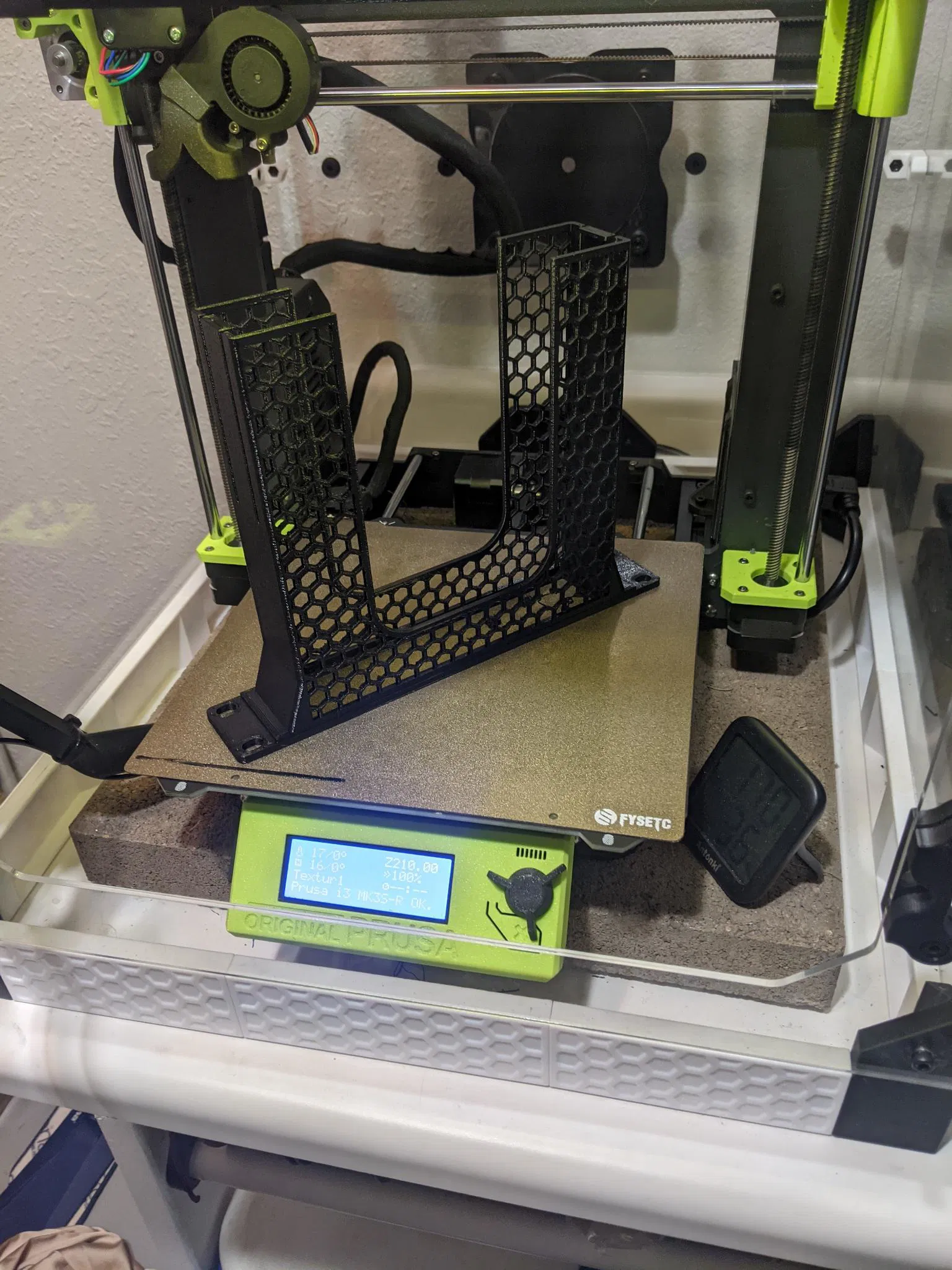 - Mình dùng nhựa PETG. Nhựa PLA cũng có thể ổn, nhưng mình hơi lo về vấn đề biến dạng nhiệt (creep). Mình cũng chưa thử nghiệm độ bền của chốt giữ với PLA.