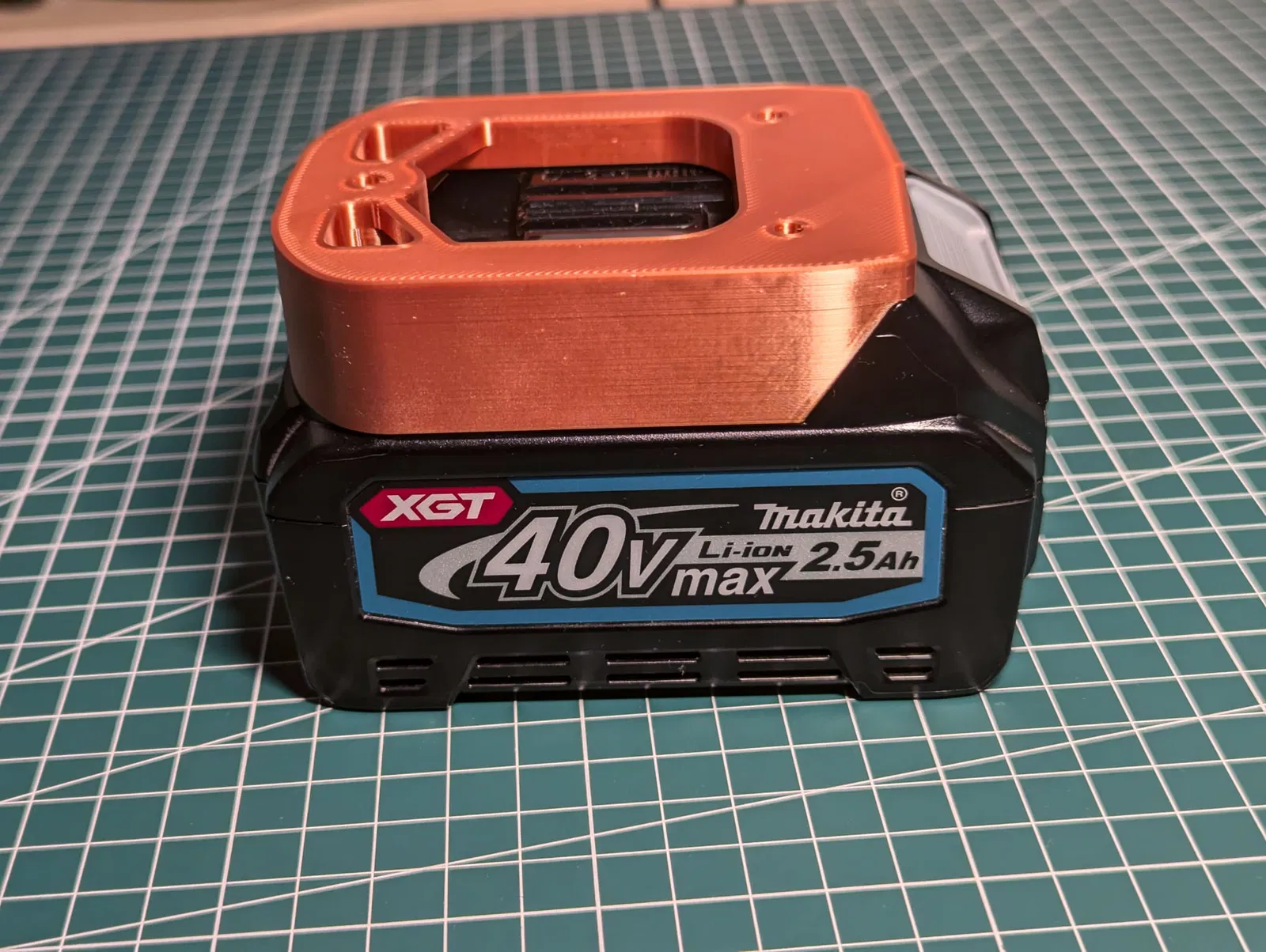 Mẫu giá đỡ pin Makita XGT 40V được thiết kế chuyên dụng cho dòng pin 2.5 Ah với độ khít chắc chắn. Sản phẩm in không cần support, phiên bản V2 và V3 được cải tiến với các mặt phẳng giúp căn chỉnh thuận tiện và tăng tính thẩm mỹ.