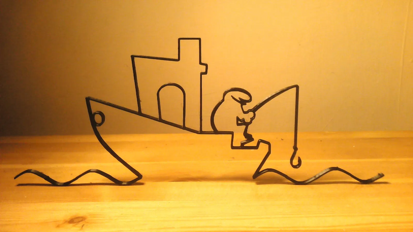 Mô hình La Linea đang câu cá trên một chiếc thuyền Benchy. Thiết kế này khá mảnh, cần lưu ý về tốc độ in và nhiệt độ bàn nhiệt để đạt kết quả tốt nhất khi in với chất liệu PLA+.