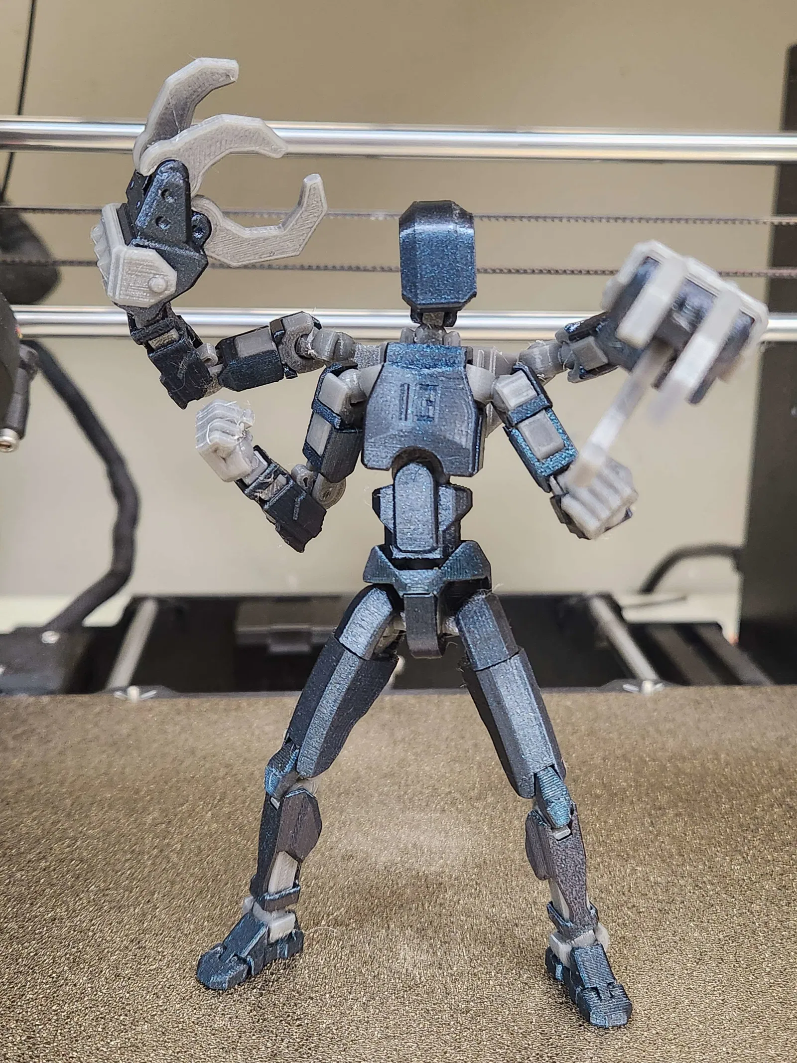 Cái vuốt này lúc mới in xong gắn vào tay hơi chặt một chút; nhưng sau vài lần tháo ra gắn vào là nó mượt ngay. Mấy bản prototype hồi đầu tôi có làm dính liền cả cẳng tay vào vuốt, nhưng thấy nó làm hạn chế biên độ cử động quá nên tôi bỏ luôn.