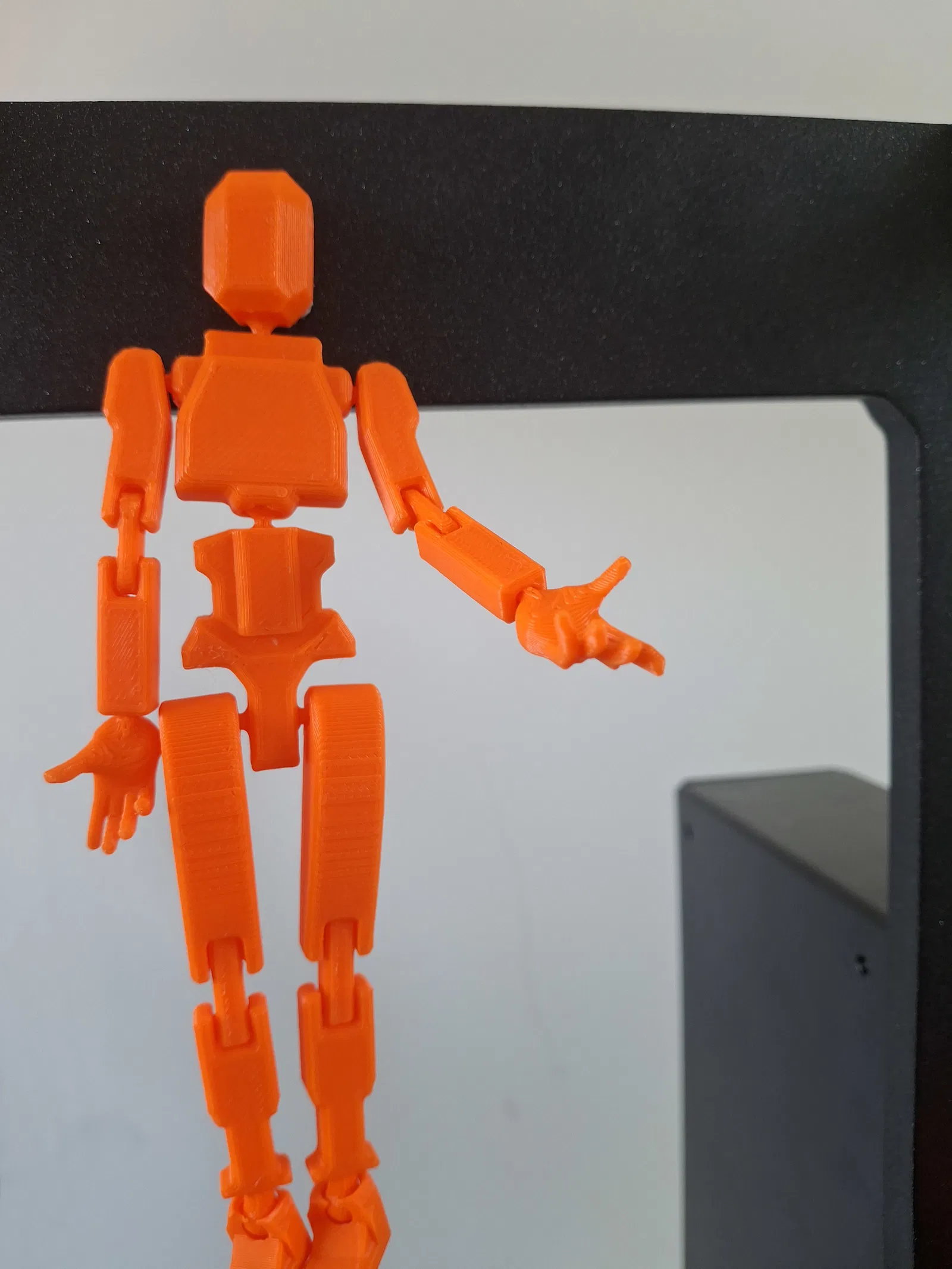 Vì đây là mô hình print-in-place, nên sẽ có khe hở 0.4mm giữa các khớp cầu và vỏ ngoài. Dù điều này giúp các khớp cử động trơn tru, nhưng đồng nghĩa là mô hình sẽ không giữ tư thế cứng cáp bằng bản Dummy 13 gốc.