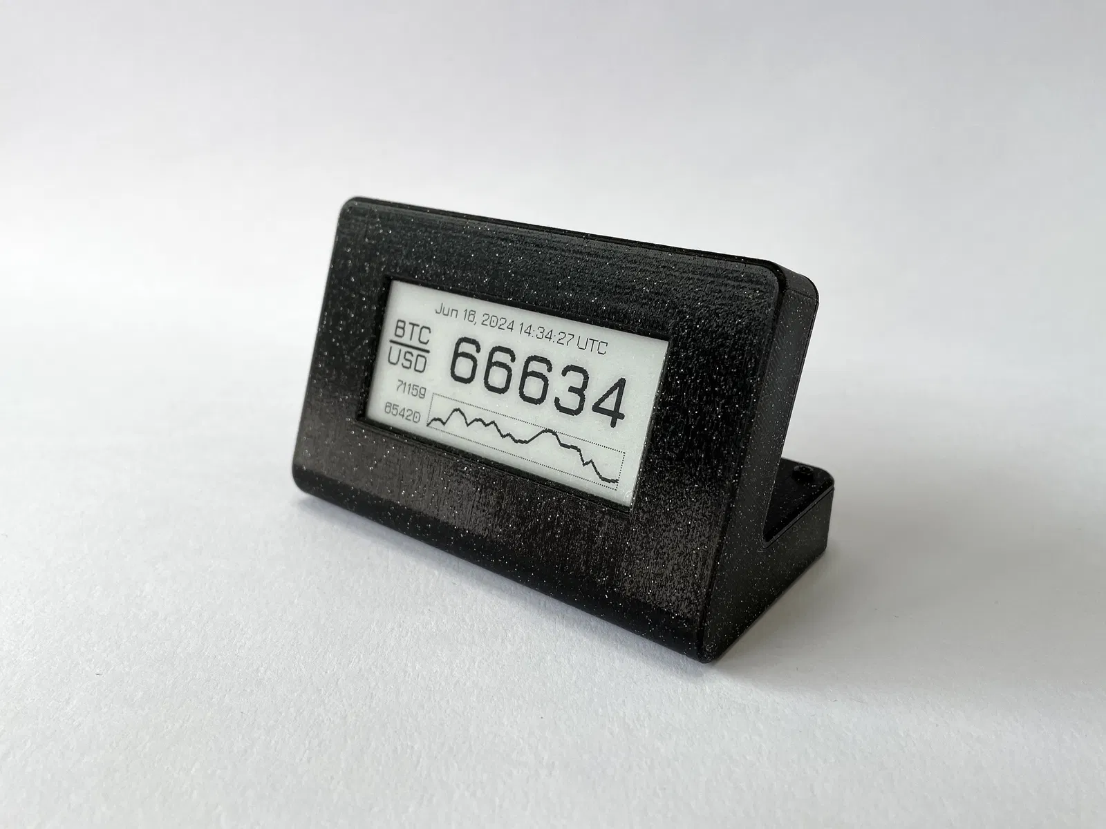 Đây là thiết bị theo dõi giá Bitcoin chạy trên chip điều khiển ESP32-C3, kết nối với màn hình e-ink đơn sắc 2.9 inch. Thiết bị tự động kết nối WiFi và lấy dữ liệu định kỳ từ CoinDesk. Giá Bitcoin hiện tại tính theo USD và biểu đồ lịch sử 30 ngày sẽ được hiển thị trực quan. Bạn có thể tùy chỉnh tần suất làm mới và chế độ hiển thị (chuẩn hoặc đảo màu).