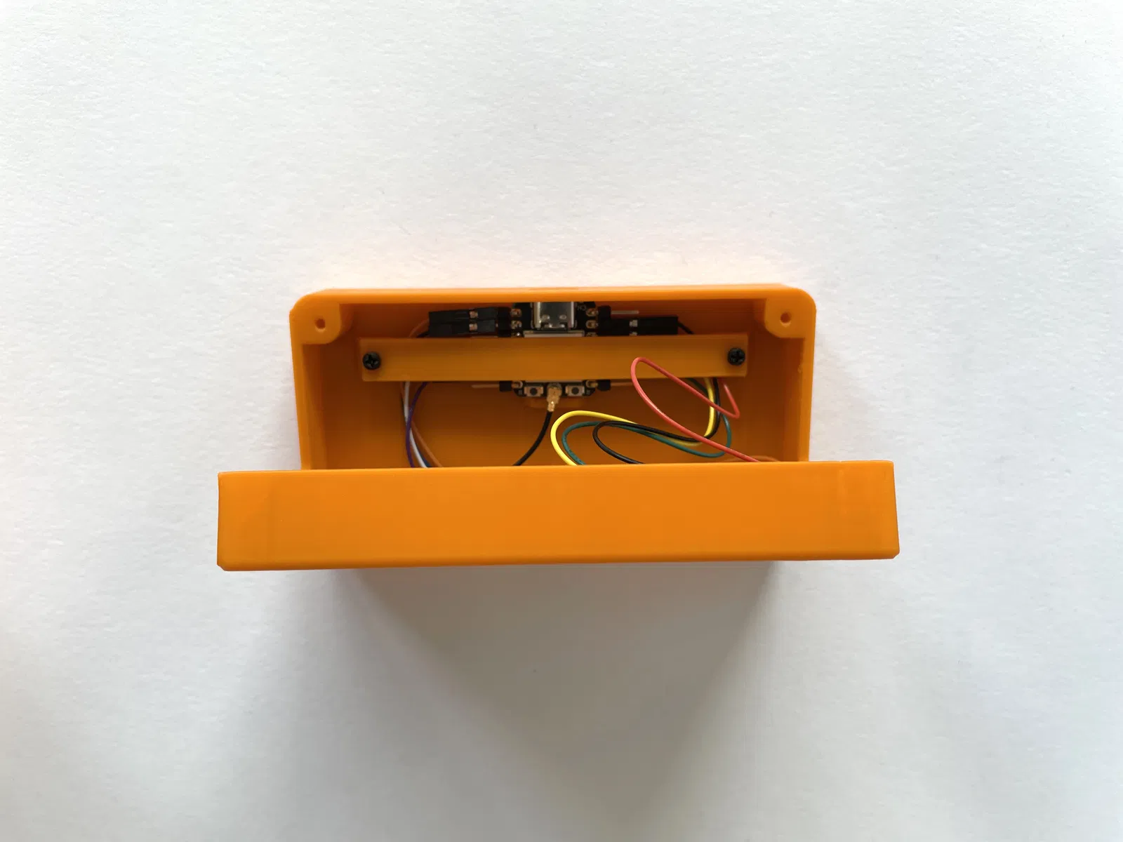 Khuyến nghị in vỏ hộp theo hướng như hình dưới, có sử dụng support và brim (cho phần nắp lưng).