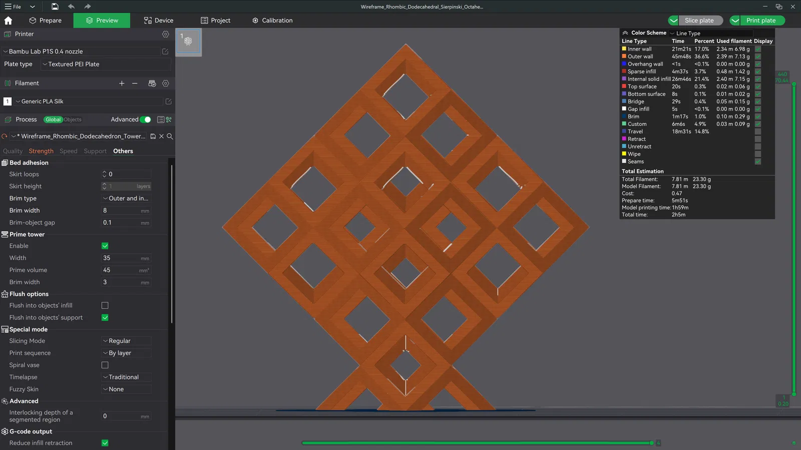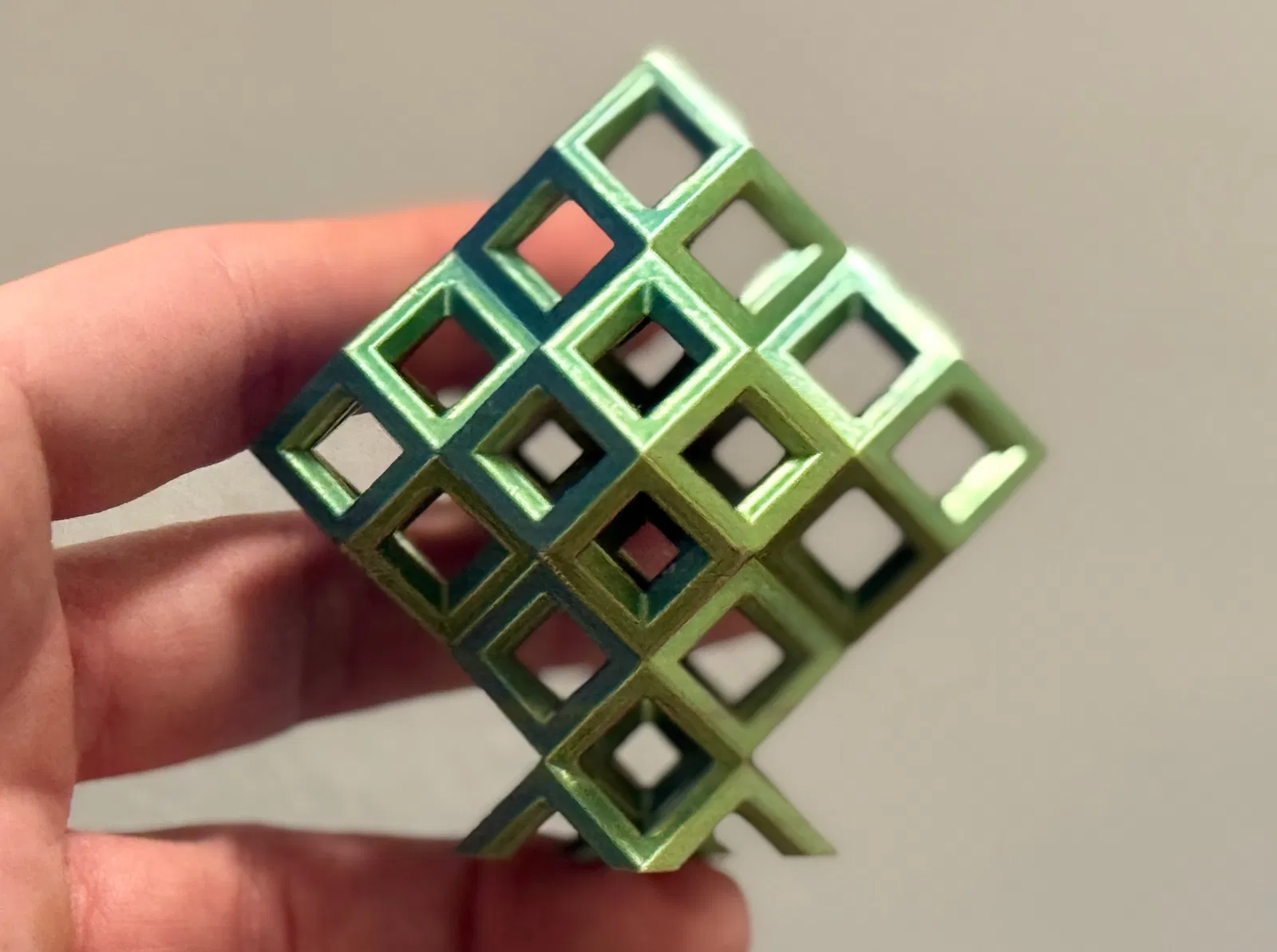Mẫu này sở hữu thiết kế wireframe Rhombic Dodecahedron, được thiết kế trên CAD và tinh chỉnh qua nhiều quy trình lặp lại để tạo thành cấu trúc fractal Sierpiński Octahedron cấp độ 1. Mô hình đi kèm với phần đế được gắn liền mạch và có thể in được mà không cần bất kỳ cấu trúc hỗ trợ (support) nào. Thiết kế phức tạp này cho phép ánh sáng xuyên qua một cách độc đáo từ nhiều góc độ khác nhau, bao gồm cả hiệu ứng hình tròn khi nhìn từ góc nhìn isometric.