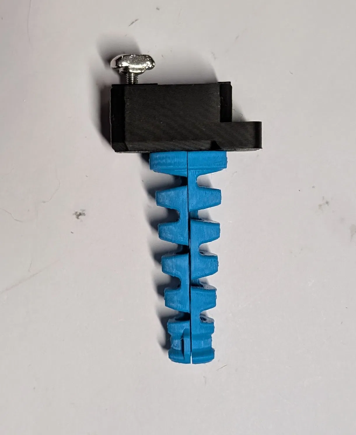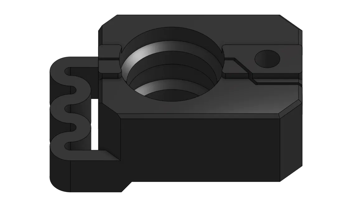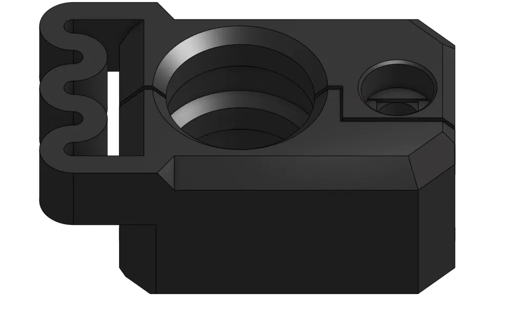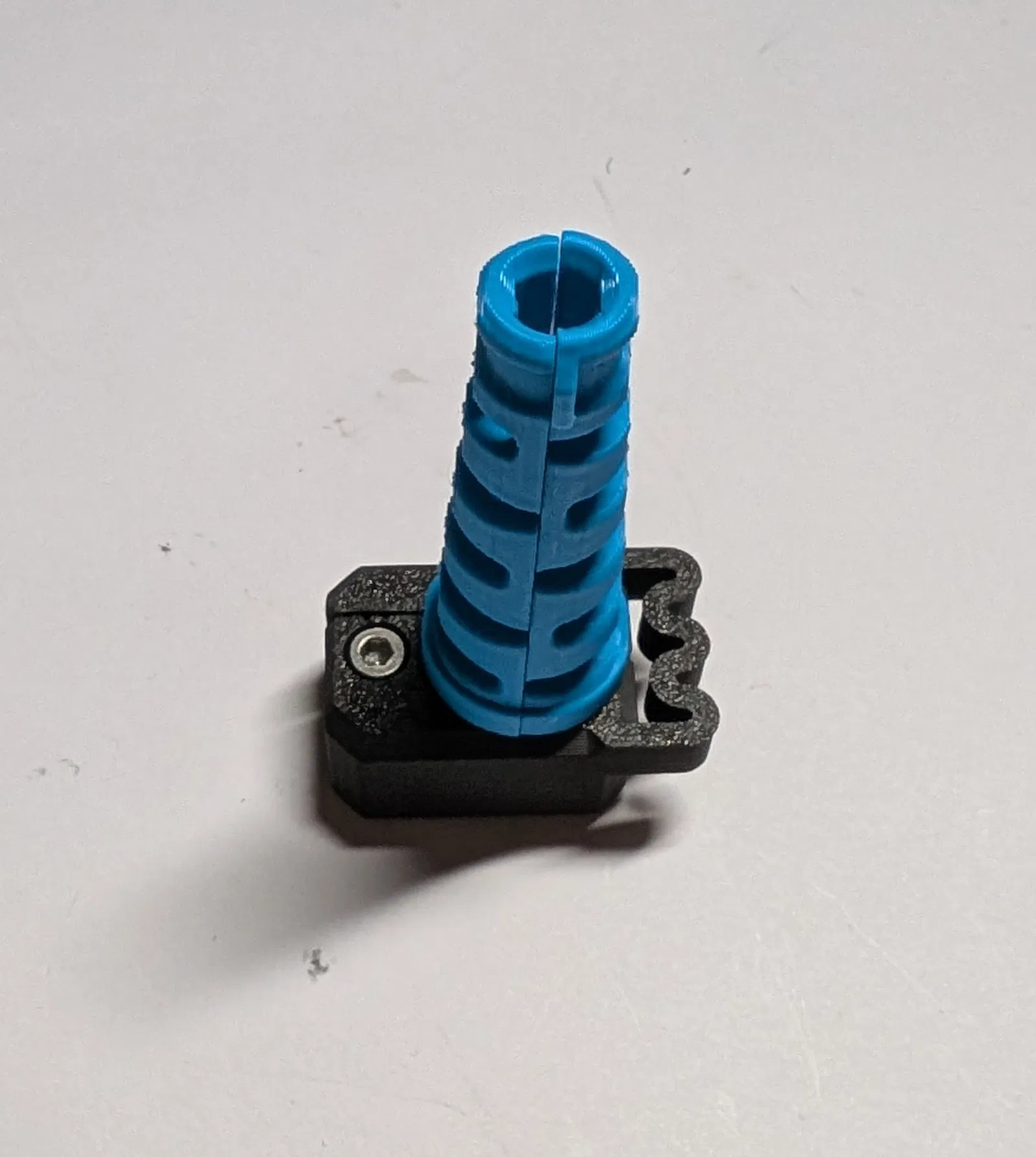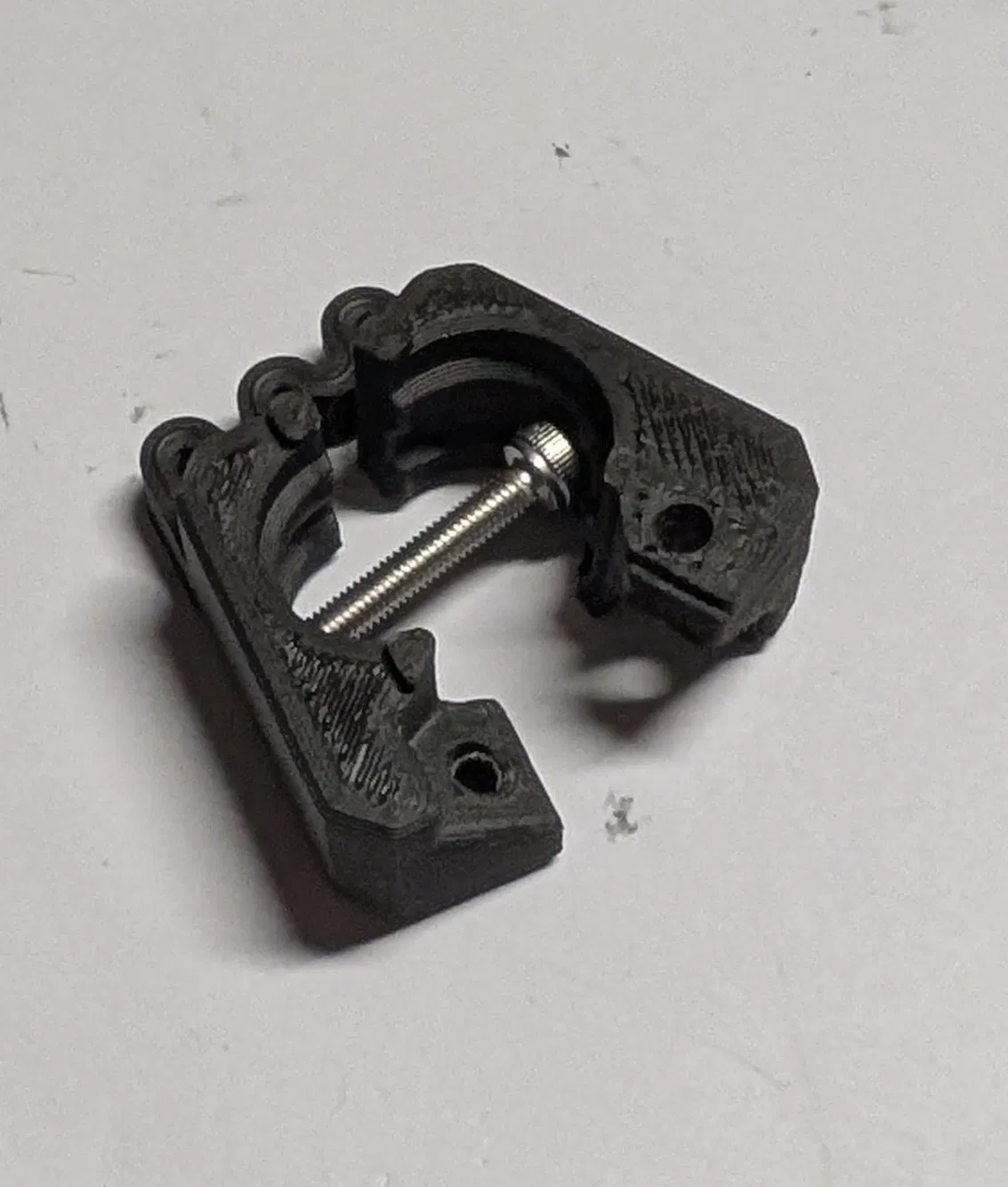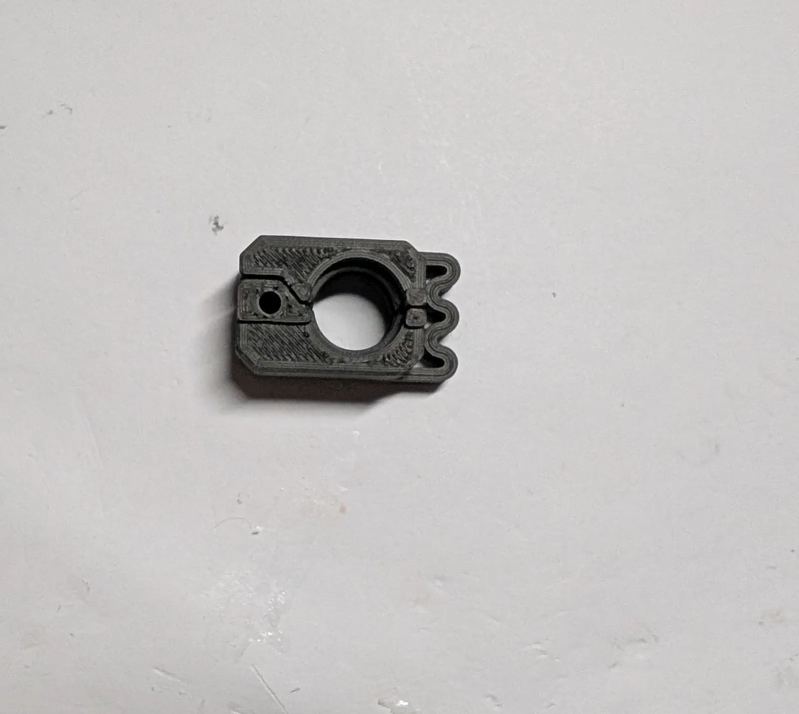Nên dùng nhựa ABS/ASA, không cần support, thiết lập 4 perimeters, 5 lớp top/bottom, và 40% infill. Hãy đảm bảo máy in của bạn đã được căn chỉnh dung sai (tolerance) chuẩn xác, nếu không hai nửa của ngàm có thể bị dính chặt vào nhau!
