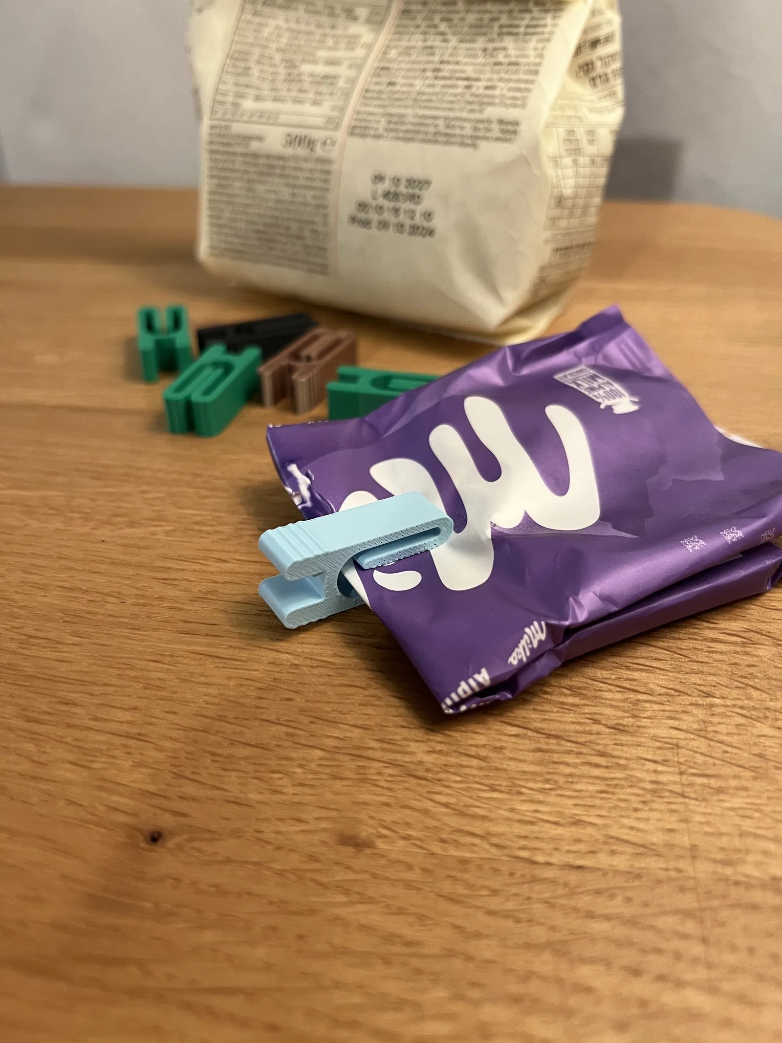 Kẹp Túi Mini - nhẹ, bền và có thể tái sử dụng. Giúp bạn kẹp kín các gói thực phẩm để giữ độ tươi ngon lâu hơn. Thời gian in chỉ mất 13 phút, thiết kế tiện lợi cho mọi nhu cầu sử dụng trong gia đình và nhà bếp.