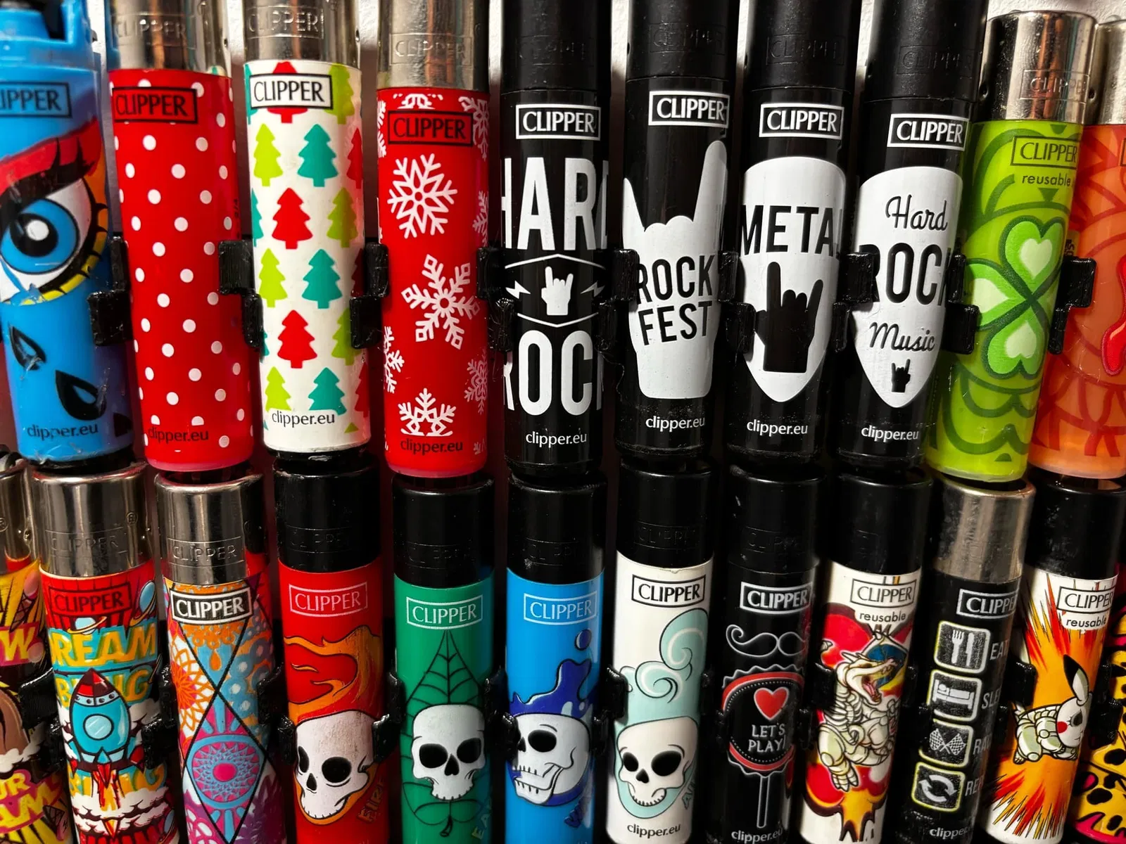 Giá treo bật lửa Clipper thiết kế dạng mô-đun có thể xếp chồng, giúp bạn treo gọn gàng các chiếc bật lửa lên tường hoặc trần nhà. Sản phẩm này in rất dễ dàng, không cần support và cho phép ghép nối nhiều giá với nhau một cách liền mạch.
