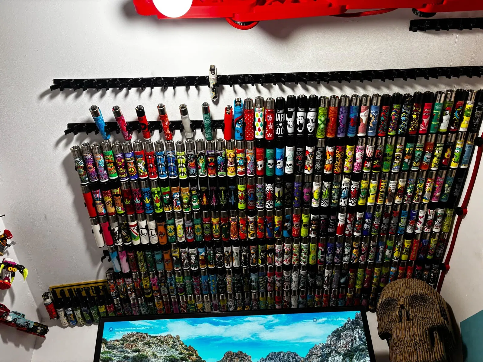 Mỗi giá đỡ có thể chứa 8 chiếc bật lửa, được thiết kế để gắn lên tường hoặc trần nhà. Các giá đỡ có thể gắn liền kề nhau mà không để lại khoảng trống giữa các hàng.