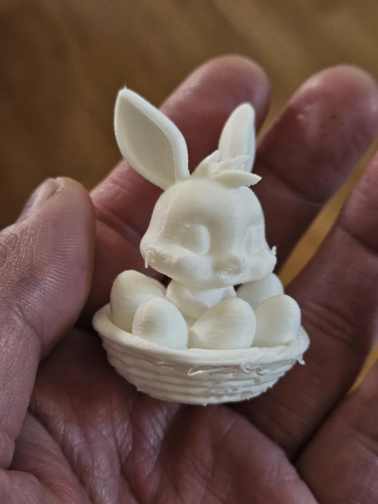- Hỗ trợ (Support): Do thiết kế của giỏ và tai thỏ, bạn có thể cần thêm một chút hỗ trợ (support) ở những phần nhô ra để tránh bị lỗi in hụt, nhưng cấu trúc tổng thể khá dễ in.