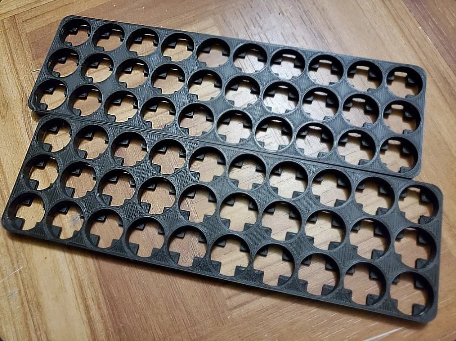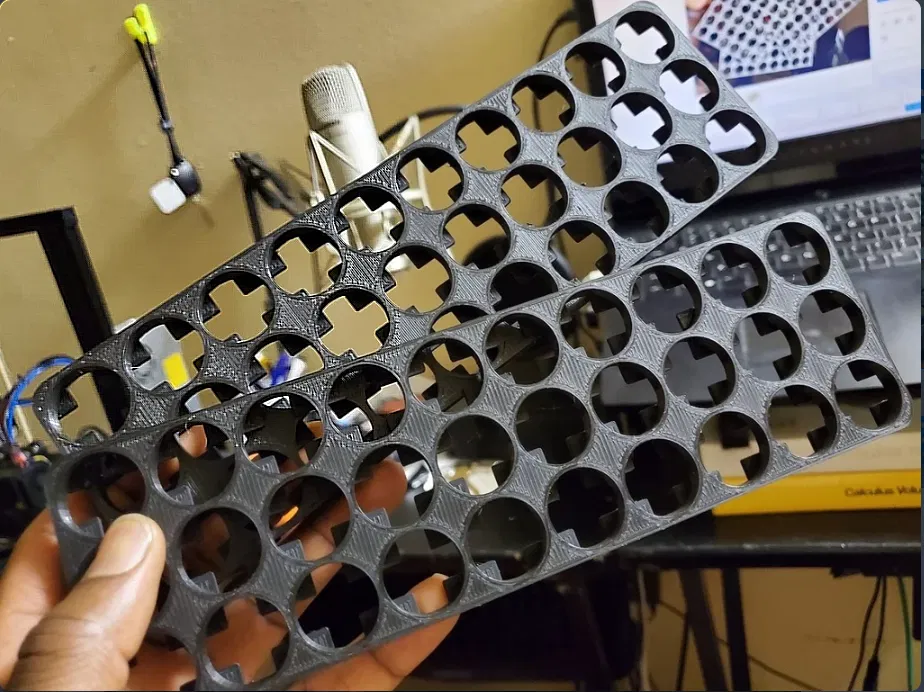 Sự linh hoạt là điểm cộng lớn nhất của mẫu thiết kế này. Với cấu trúc dạng module, anh em có thể dễ dàng in nhiều tấm và ghép lại với nhau để tạo thành các cấu hình pin lớn hơn như 10s3p, 3s10p hoặc bất kỳ tổ hợp nào mà dự án của anh em yêu cầu. Việc cố định pin bằng khung in 3D không chỉ giúp khối pin trông thẩm mỹ hơn mà còn tạo khoảng cách an toàn giữa các viên pin, giúp tản nhiệt tốt hơn và bảo vệ vỏ bọc pin khỏi ma sát, va đập.