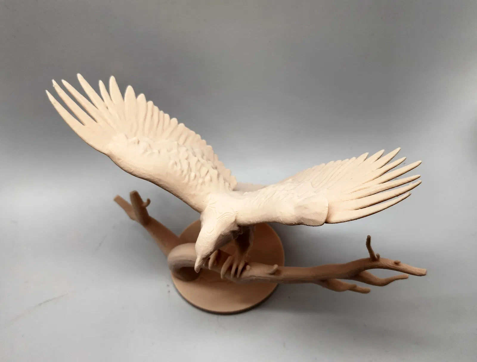 Đây là một mô hình 3D ấn tượng tái hiện hình ảnh chú đại bàng dũng mãnh với đôi cánh dang rộng, chuẩn bị cất cánh từ trên cành cây khô. Từng chi tiết của bộ lông, móng vuốt cho đến đường nét uốn lượn của cành cây đều được thiết kế tỉ mỉ, mang lại cảm giác sống động như thật. Đây không chỉ là một vật phẩm trang trí bắt mắt cho bàn làm việc hoặc kệ sách mà còn là minh chứng cho sự tinh tế trong kỹ thuật in 3D hiện đại.