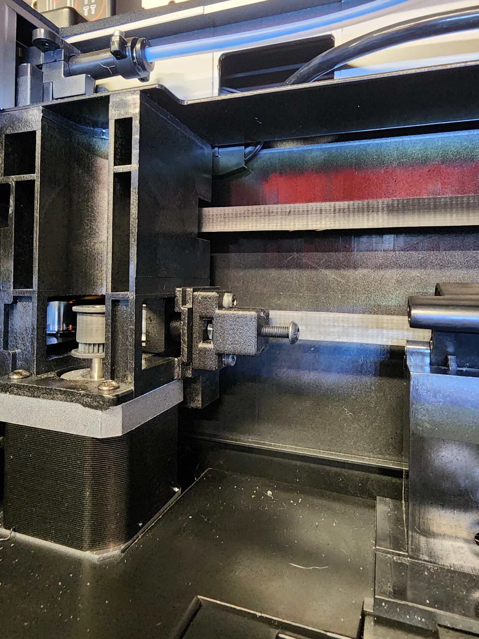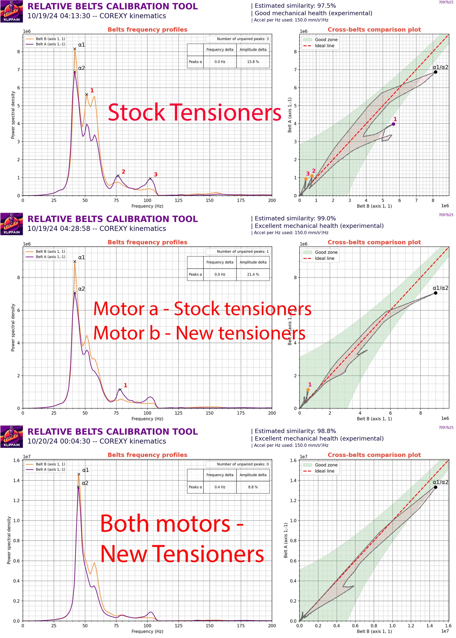 Vui lòng chỉ in nếu bạn sẵn sàng thử nghiệm. Vốn xuất thân từ cộng đồng máy in DIY, mình không mấy mặn mà với bộ tăng đai tự động trên dòng máy Plus4 vì mình muốn kiểm soát đai chính xác hơn. Vì vậy, mình đã thiết kế lại giá đỡ và miếng chèn để thay thế bằng loại có thể điều chỉnh bằng ốc vít. Mình đã in thử một cái để trải nghiệm và ngay lập tức thấy rõ hiệu quả khi chạy bài kiểm tra Klippian Shake and Tune Belt Comparison. Sau khi lắp cả hai bên, không chỉ độ căng của đai được cải thiện đáng kể mà chỉ số input shaper cũng gọn gàng hơn, cho phép máy đạt gia tốc cao hơn nhiều. Lưu ý trước khi lắp ráp: TUYỆT ĐỐI KHÔNG IN BẰNG NHỰA PLA! Mình in bằng nhựa PA6-CF20. Bạn cũng có thể dùng ABS hoặc ASA. Nếu bạn muốn dùng Klippian Shake and Tune trên máy Plus4, người dùng Stew675 đã tạo một bản fork dành riêng cho chúng ta. Bạn có thể tìm hướng dẫn tại đây. Đây vẫn là dự án đang phát triển (WIP). Mình nghĩ ý tưởng này ổn nhưng sẽ còn các bản cập nhật và sửa đổi. Rất hoan nghênh ý kiến đóng góp của các bạn, nhưng vui lòng cung cấp số liệu thực tế. Những cảm nhận kiểu "mình thấy là" sẽ không được tính là số liệu khách quan. Hãy cẩn thận khi tháo bộ tăng đai gốc. Chúng có lò xo bên trong nên các linh kiện có thể bị bắn ra ngoài rất nhanh. Các miếng chèn được tạo ren cho ốc M4 bước 0.7. Mình đã in thử vài cái, có cái vặn tay vào được ngay, nhưng cũng có cái phải dùng mũi taro để làm sạch ren. Dù sao thì cũng nên nhớ, dù in bằng nhựa gì đi nữa thì nó vẫn là nhựa. Hãy chú ý khi ốc chạm đáy, đừng vặn quá tay nếu không sẽ làm vỡ phần đáy. Đừng vội vàng. Mình có dùng thiết bị đo độ căng đai. Bạn có thể tự in hoặc mua. Điều quan trọng nhất là hai đai phải có độ căng bằng nhau (đó là lý do mình không thích dùng lò xo). Phần cứng cần thiết: x1 - Ốc M4 x 35mm (đầu chìm hoặc đầu tròn; có thể dùng loại 30mm) x1 - Đai ốc M4 x2 - Ốc M3 x 16mm đầu tròn. Video hướng dẫn lắp ráp: CẬP NHẬT 19/10/2024 08:21PM EST - Mình đã rút ngắn miếng chèn để nó không tạo lực căng lên pully khi mới lắp. Bản cũ đã bị loại bỏ. Rất xin lỗi nếu sự thay đổi này khiến bạn phải in lại nhanh như vậy.
