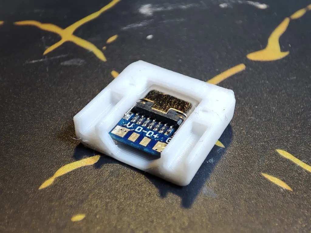 Vỏ bảo vệ nhỏ gọn dành cho module nguồn USB-C cái. Thiết kế này giúp bạn dễ dàng chuyển đổi các thiết bị từ dùng pin sang nguồn điện USB tiện lợi. Dễ in, không cần support, lắp đặt chắc chắn bằng khớp gài.