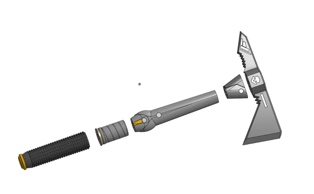 Điểm đặc biệt của mô hình này nằm ở thiết kế thông minh, cho phép bạn tự in 3D từng bộ phận một cách dễ dàng. Thay vì in nguyên khối phức tạp, tác giả đã chia nhỏ các phần của chiếc rìu để tối ưu hóa quá trình in ấn, giúp bề mặt chi tiết hơn và tiết kiệm vật liệu hỗ trợ. Điểm nhấn kỹ thuật quan trọng nhất là cấu trúc bên trong được thiết kế để kết nối bằng một thanh trục (rod) kích thước 1/2 inch, giúp tăng cường độ cứng cáp và tính ổn định cho toàn bộ sản phẩm sau khi lắp ráp xong.