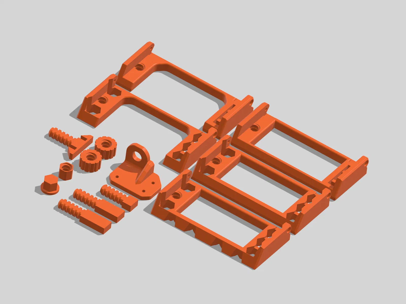 - Bộ bu-lông/đai ốc đi kèm 2 đai ốc, mục đích là để bạn in 2 cái làm "jam nut" (đai ốc hãm), giúp bu-lông không bị lỏng khi xoay màn hình.