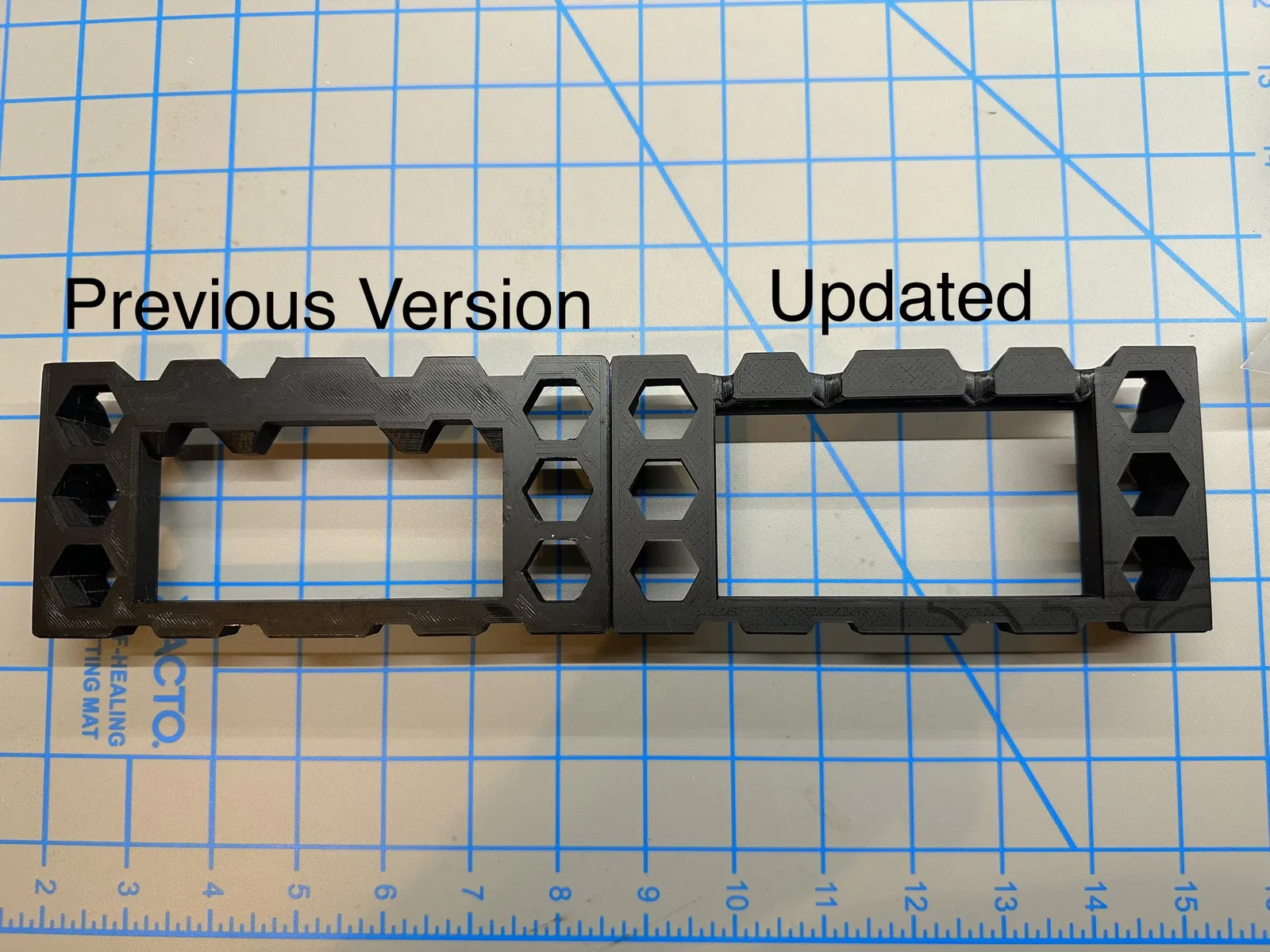 - Cập nhật bu-lông và đai ốc lên kích thước 14mm, ren thô hơn, thay đổi hướng in để tăng độ bền kéo.