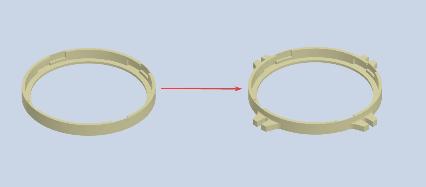 Mở tệp bước trong một chương trình CAD và tạo các tab tại các điểm cần kết nối vít.