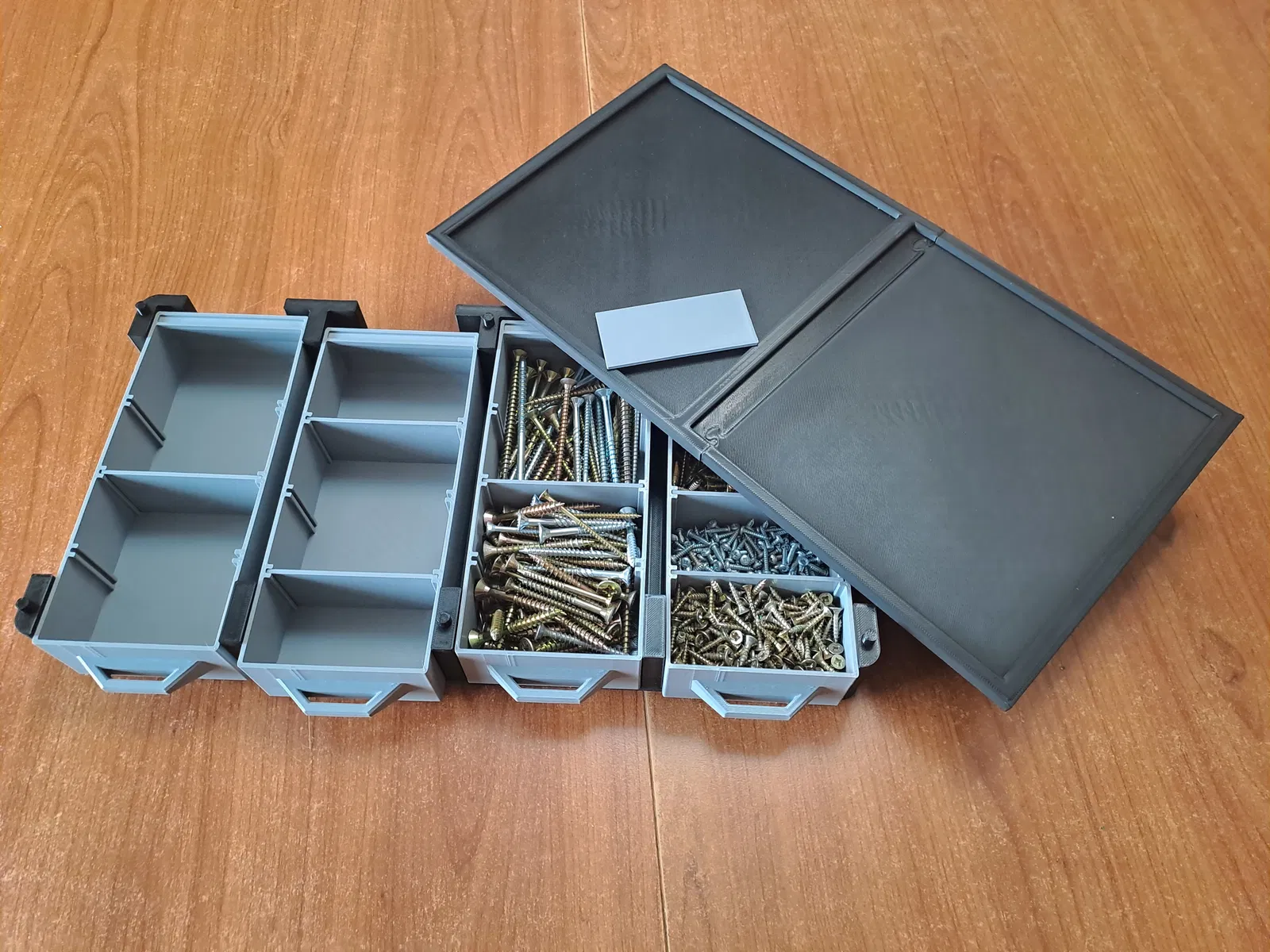 Bộ khay sắp xếp ốc vít và linh kiện nhỏ dài 40 cm với thiết kế xếp chồng thông minh. Các chi tiết A và B khớp nối dễ dàng, có thể tùy chỉnh vách ngăn bên trong các hộc kéo để tối ưu không gian lưu trữ vật dụng của bạn.