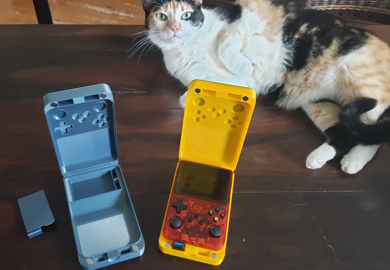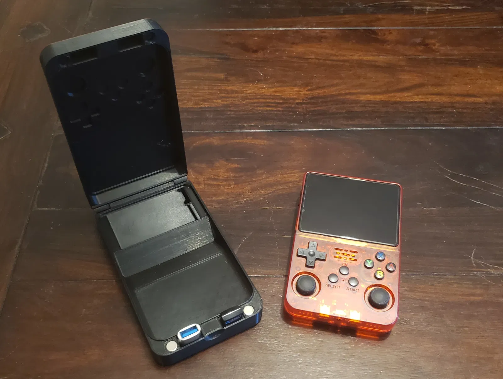Mẫu case tùy biến cho máy chơi game retro R36S, tích hợp thêm ngăn chứa phụ kiện, thẻ nhớ và bộ chuyển đổi USB. Hỗ trợ in nhiều màu và cần nam châm để đóng mở. Đảm bảo in thử khe cắm trước khi sử dụng để có độ vừa vặn tốt nhất.