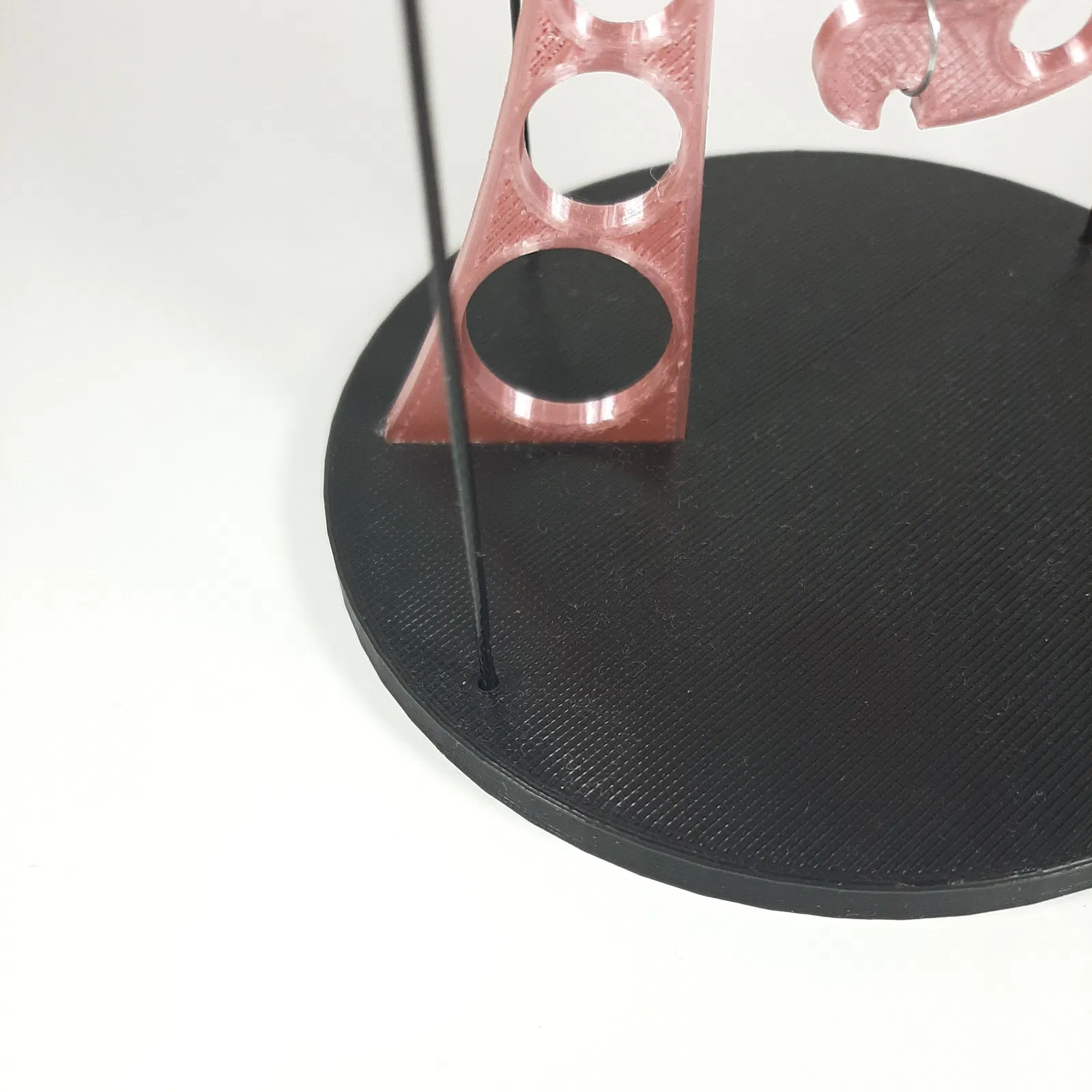 Thiết kế Tensegrity Structure gồm 4 mảnh in 3D với nhiều tùy chọn đế khác nhau như đế vòng, đế nút thắt hoặc đế dây bi, tạo nên cấu trúc treo lơ lửng độc đáo.