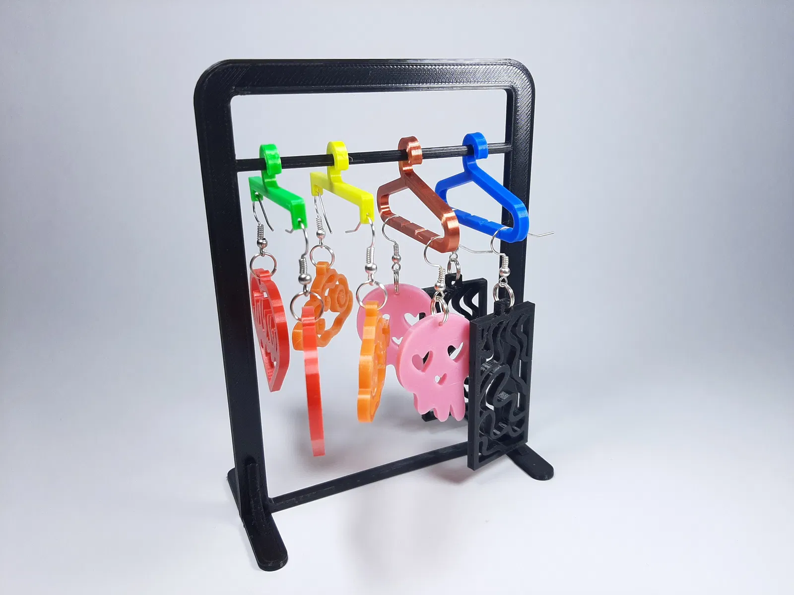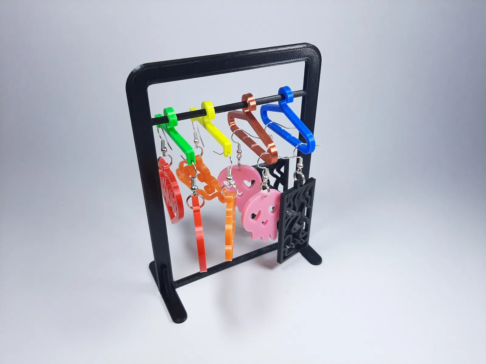 Một mẫu thiết kế giá treo hoa tai mini đơn giản và tiện dụng, gồm 3 bộ phận chính kèm hai kiểu móc treo linh hoạt. Phù hợp để trưng bày bộ sưu tập hoa tai của bạn một cách gọn gàng, in không cần support và dễ dàng lắp ráp.
