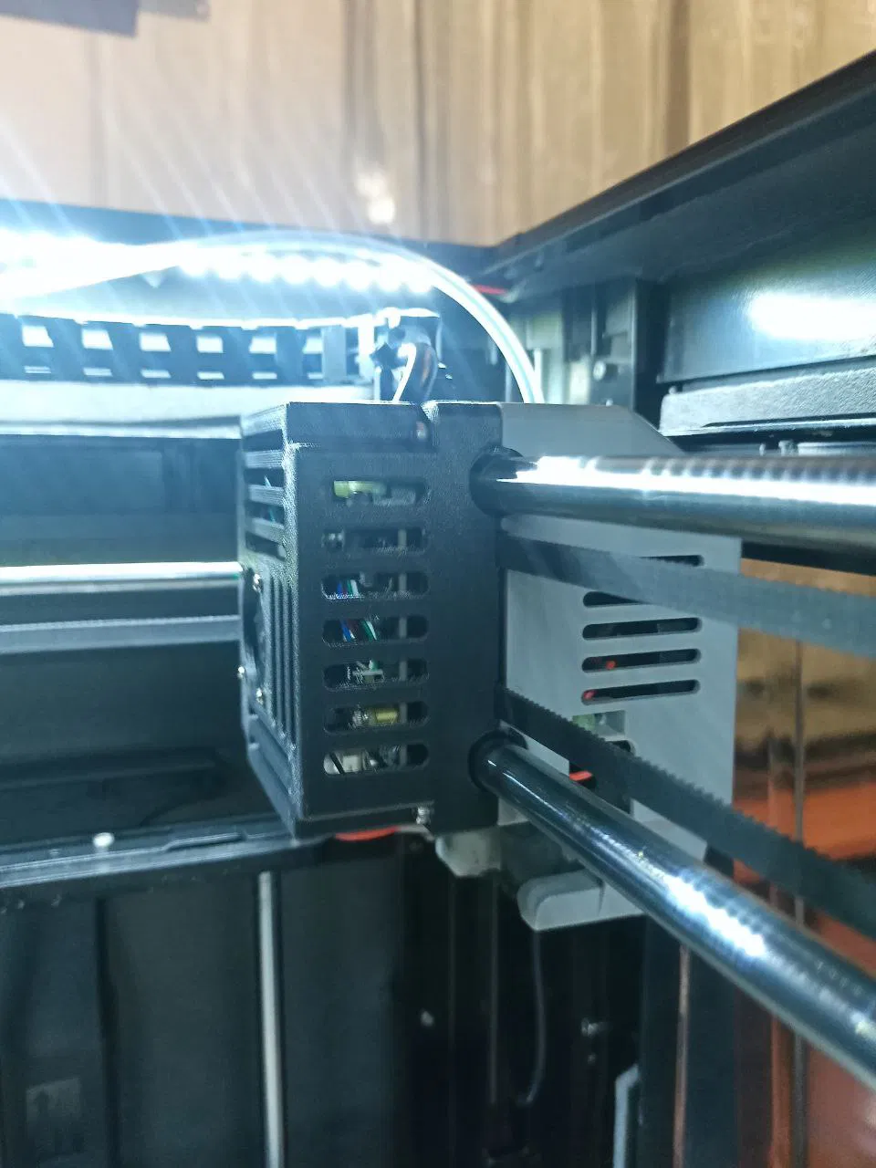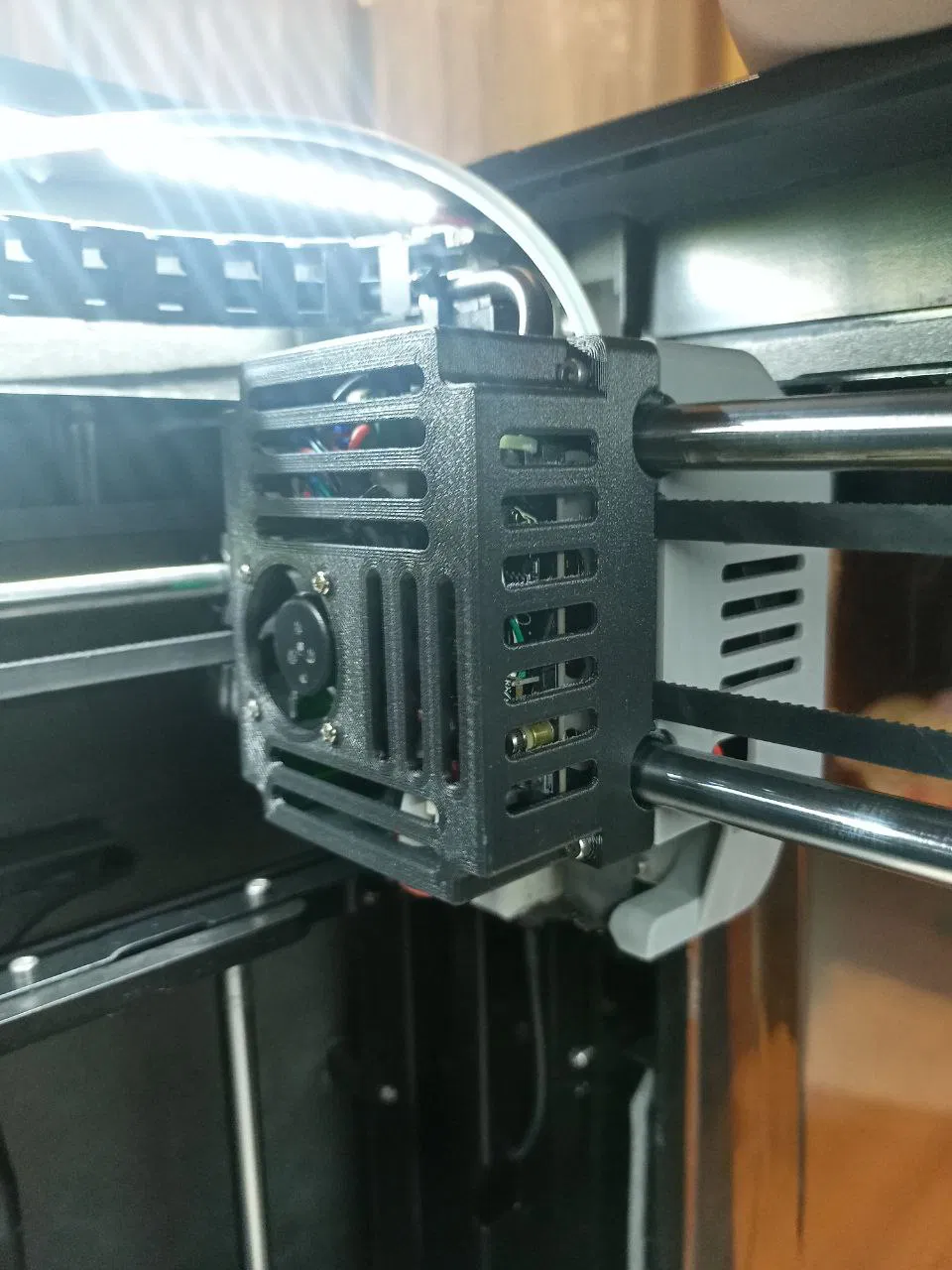 Lưu ý quan trọng: Vùng in theo trục Y sẽ bị giảm xuống còn tối đa 235mm! Đây là nắp lưng tùy chỉnh cho đầu in của máy Qidi Q1 PRO. Ở mặt sau, mình đã thiết kế một lỗ khoét để gắn quạt kích thước 30x30x10mm. Anh em lưu ý là mình phải tăng độ dày của nắp một chút để quạt không bị cấn vào tản nhiệt của driver động cơ bước trên bo mạch. Mình cũng đã thêm nhiều lỗ thoát khí nhất có thể để giúp bo mạch không bị quá nhiệt khi sử dụng buồng in kín lúc in nhựa ABS. Kết quả là nhiệt độ đã giảm xuống còn 68.8 độ C khi buồng in được làm nóng ở mức 60 độ C. Mình thấy bản mod này rất hiệu quả và rất đáng để nâng cấp! Hiện tại mình chưa kiểm tra tính năng làm sạch vòi phun bằng tấm nỉ vì mình đang dùng đường xả nhựa (purge line) ngay cạnh chi tiết in. Hy vọng anh em nào đã kiểm tra thì cho mình xin ý kiến dưới phần bình luận nhé! Cảm ơn mọi người! Mình cũng có đính kèm file gốc định dạng Solidworks và STEP để mọi người có thể tùy chỉnh nếu muốn. Chúc anh em in ấn thành công!