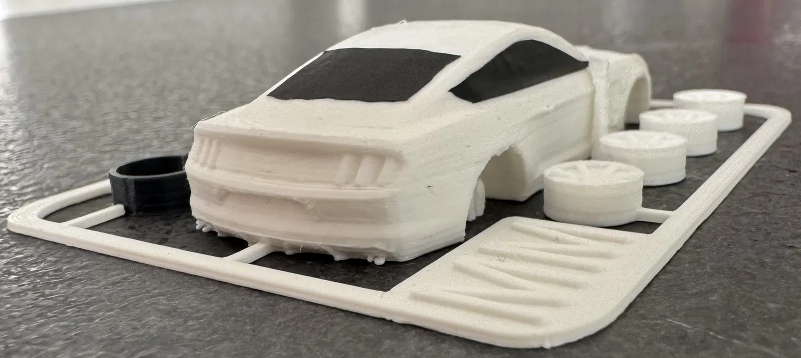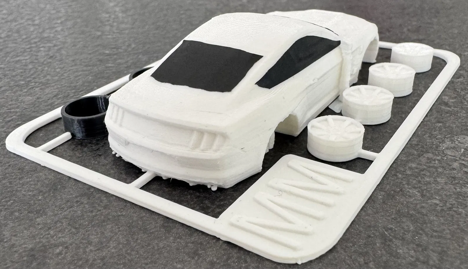 Điểm thú vị nhất của mô hình này chính là phong cách 'kit card' cổ điển, gợi nhớ đến những bộ mô hình nhựa rời mà chúng ta thường thấy. Các chi tiết như thân xe, bánh xe được bố trí khoa học trên một khung nhựa phẳng, giúp việc in ấn trở nên dễ dàng và tiết kiệm không gian. Sau khi in xong, bạn chỉ cần gỡ nhẹ các bộ phận ra khỏi khung và tiến hành lắp ráp. Sự tỉ mỉ trong từng đường nét giúp tái hiện chân thực vẻ ngoài mạnh mẽ và hầm hố của chiếc GT350R thực tế, biến nó thành một tác phẩm nghệ thuật thu nhỏ đầy ấn tượng.