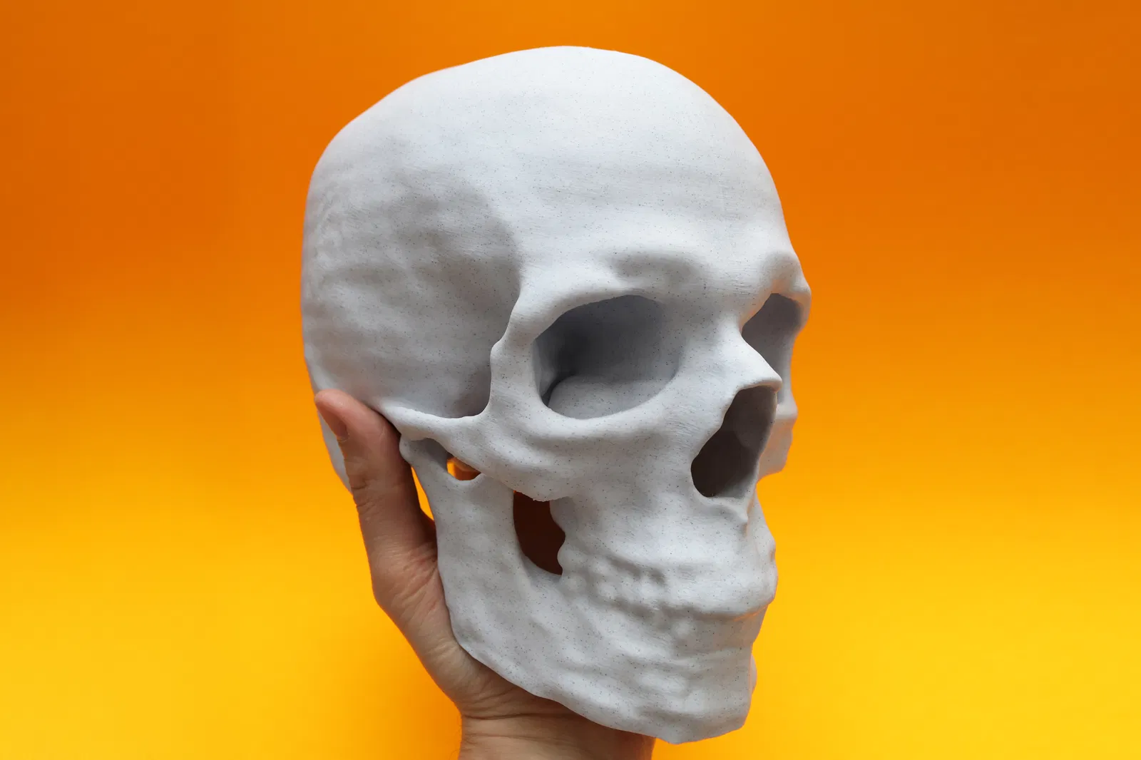 Bạn đang tìm phiên bản bát của mô hình sọ này? Bạn có thể tải xuống tại đây! Mình đã sử dụng dữ liệu quét CT để tạo ra mô hình 3D cho hộp sọ của chính mình! Phần đế của hàm dưới đã được cắt phẳng để có thể đặt cố định trên bàn in. Thông số in: Support: Tree (auto) Infill: Gyroid (15%) Tường: 2 Tỉ lệ: 100% (kích thước thật 1:1) và 50% Đã in bằng nhựa Polymaker Marble PLA.
