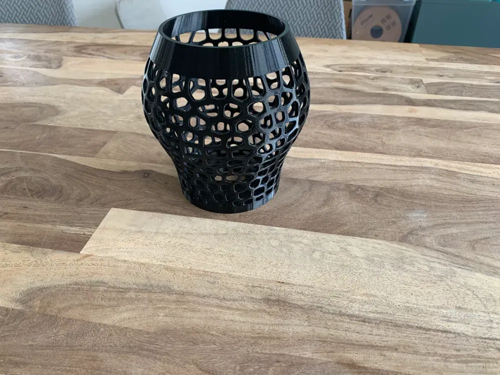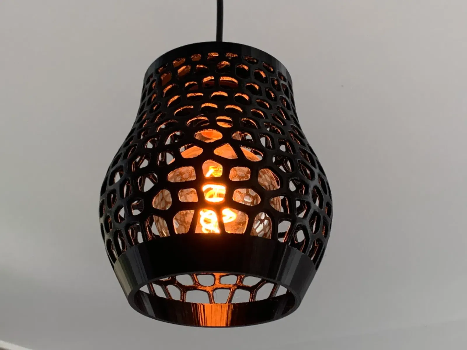 Mẫu chao đèn hoặc bình hoa phong cách Voronoi đầy nghệ thuật. Bạn có thể dễ dàng tùy chỉnh kích thước lỗ gắn đuôi đèn hoặc bịt đáy để biến nó thành một món đồ trang trí nhà cửa ấn tượng bằng máy in 3D.