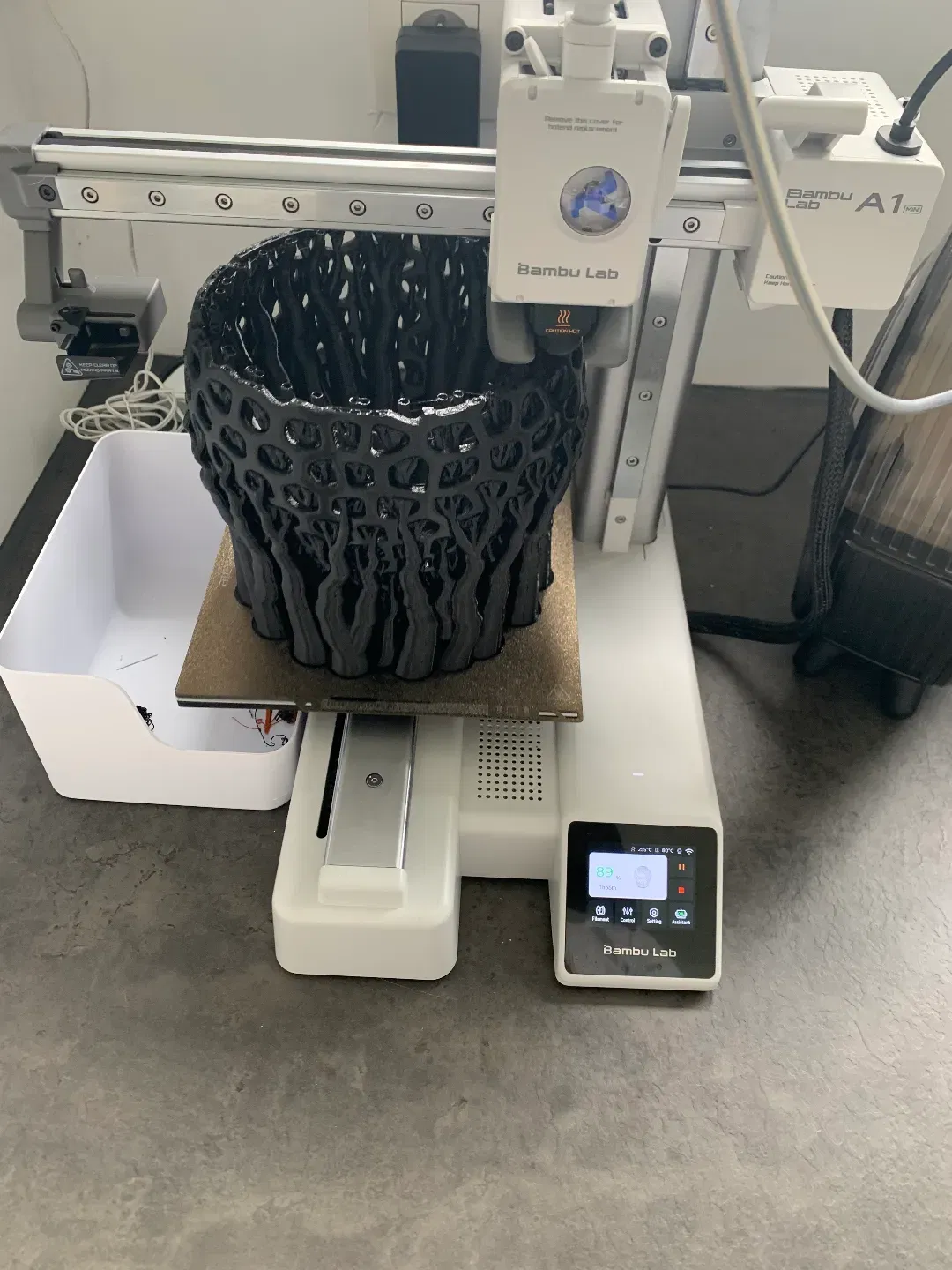 Mình đã dùng nhựa PETG để tận dụng độ bóng bẩy đặc trưng của nó, nhưng nếu in bằng PLA thì sẽ dễ dàng hơn nhiều.